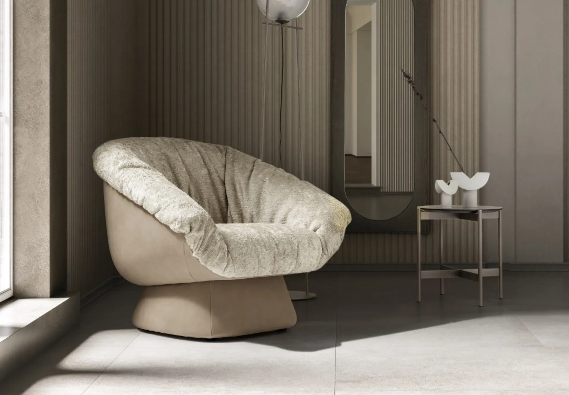 La Poltrona Hall di Ditre Italia, ideata dal designer Stefano Spessotto, presenta un'architettura ispirata alla delicatezza di una coppa di liquore, traducendosi in proporzioni e geometrie che esprimono una raffinata maestosità. Questo complemento d'arredo è concepito per offrire massima personalizzazione, proponendo diverse finiture: da una versione integralmente rivestita in tessuto a una soluzione 'mix' che combina l'eleganza della pelle con la versatilità del tessuto. L'attenta selezione dei materiali e la cura dei dettagli costruttivi assicurano una durabilità superiore e un'integrazione stilistica impeccabile in ambienti ricercati.