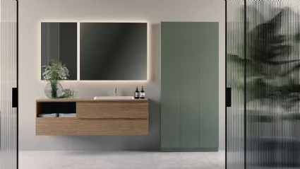 Decorate the bathroom of a modern home at its best with Sidero 01, bathroom furniture and accessories in Birex wood.