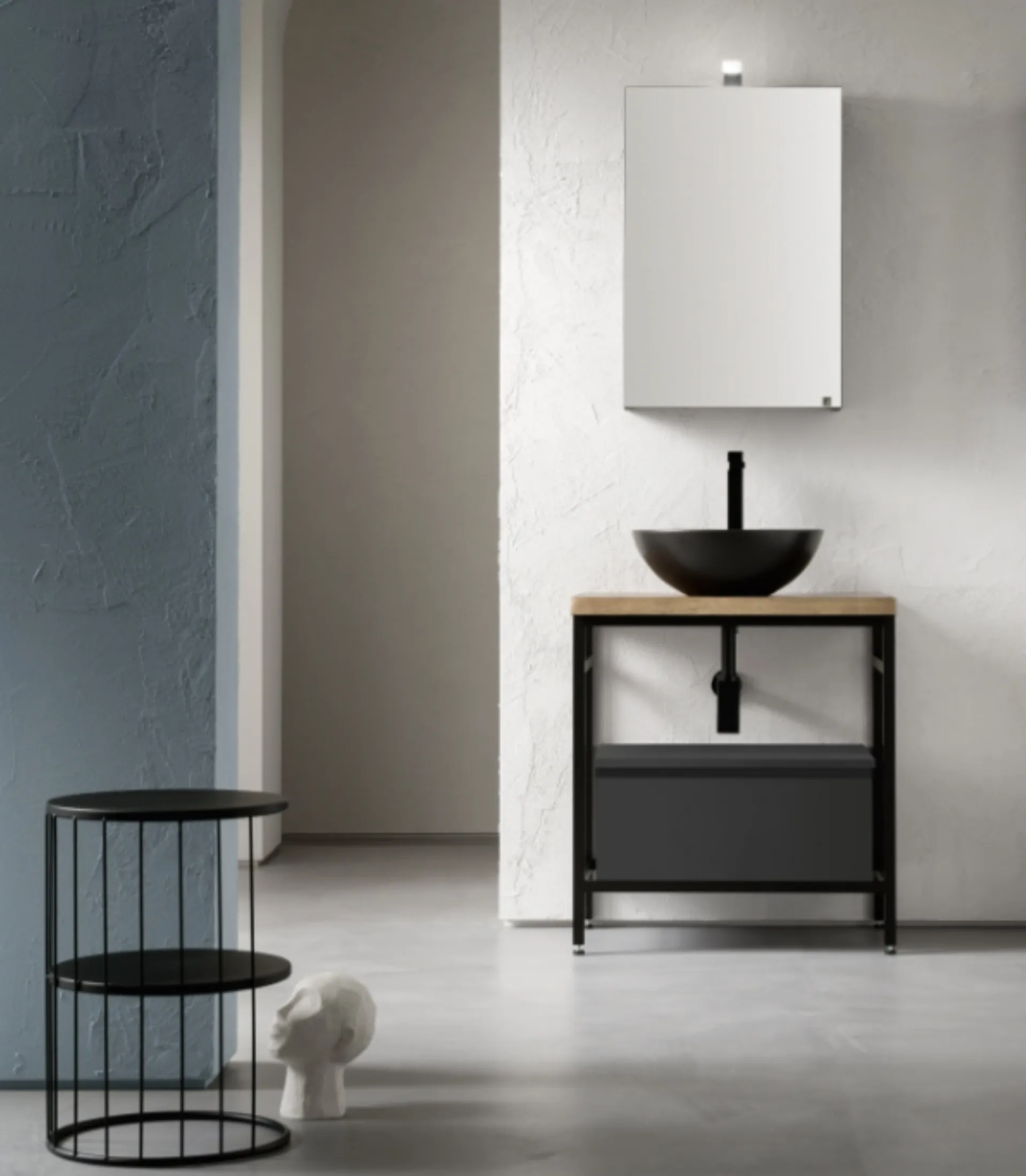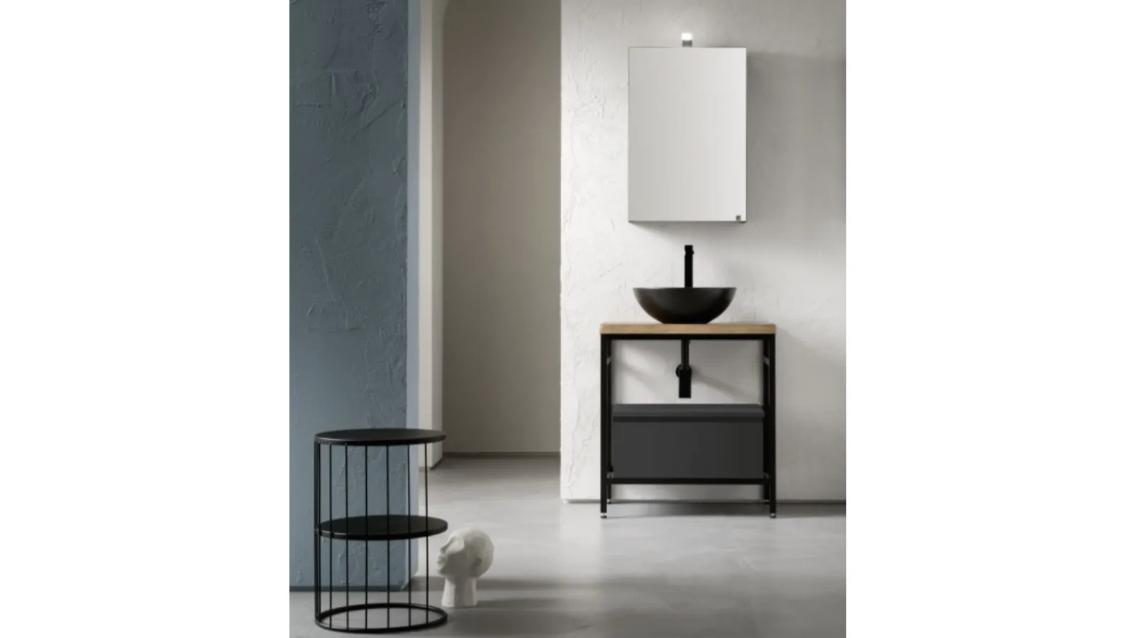 | Materiale: | Laccato opaco 900 (G4 grigio ombra), Ceramica nero opaco, Legno rovere corteccia 841 |