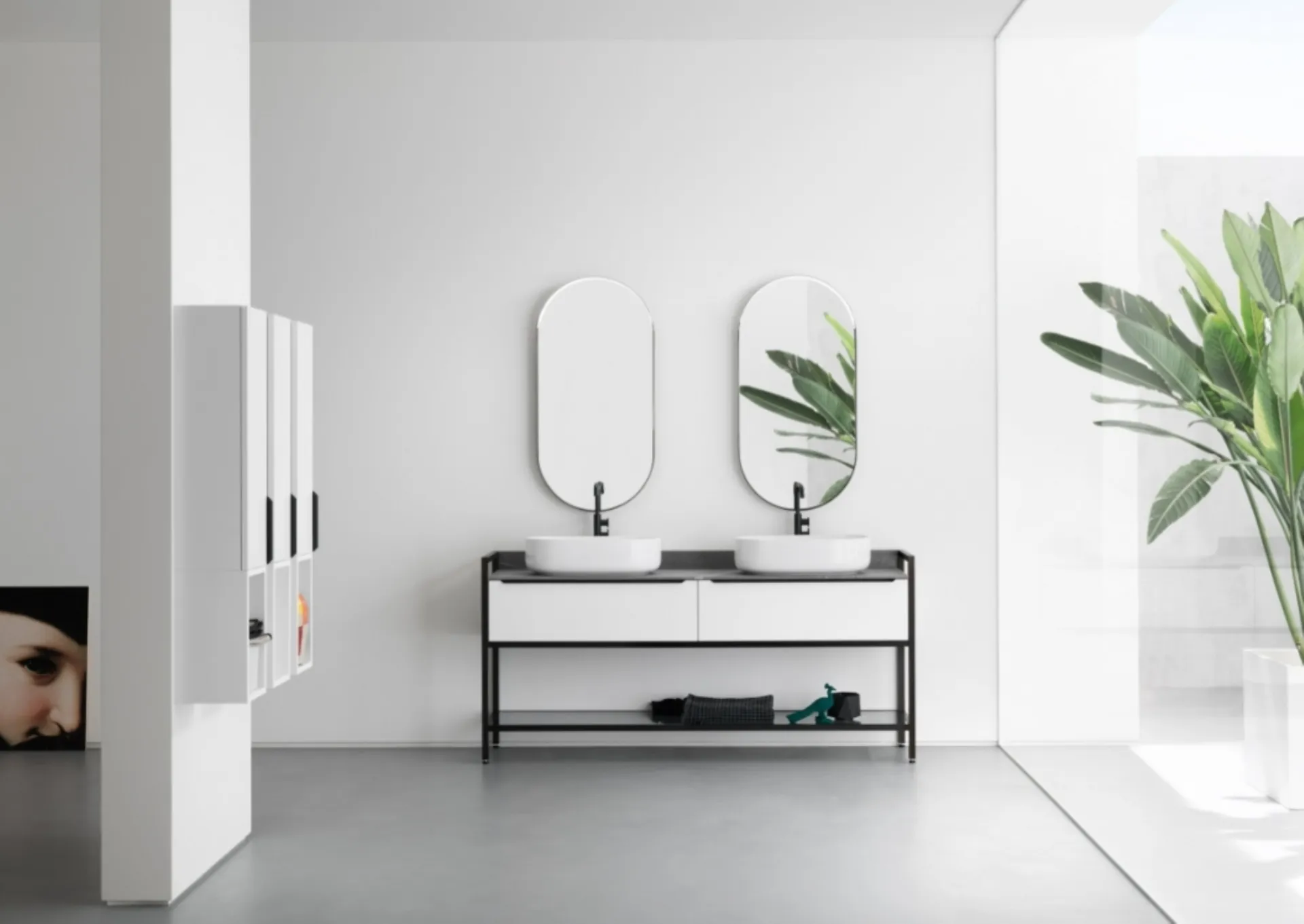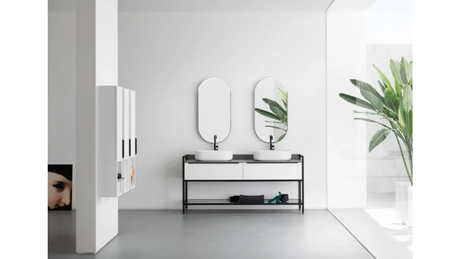 Il sistema d'arredo bagno B201 BD003 di Compab incarna l'essenza della collezione B201, distinguendosi per un'armoniosa fusione di volumi e linee essenziali. Il concept enfatizza l'equilibrio tra pieni e vuoti, conferendo agli elementi una purezza formale. La versatilità del prodotto è amplificata da un'ampia selezione di finiture, che spaziano dai nobilitati ai laccati (disponibili in opaco, lucido e sabbiato) fino agli impiallacciati, consentendo un'elevata personalizzazione estetica e funzionale. Il design meticoloso e la selezione di materiali di alta qualità garantiscono una durabilità eccezionale e un'estetica raffinata, assicurando una soluzione d'arredo che permane nel tempo.