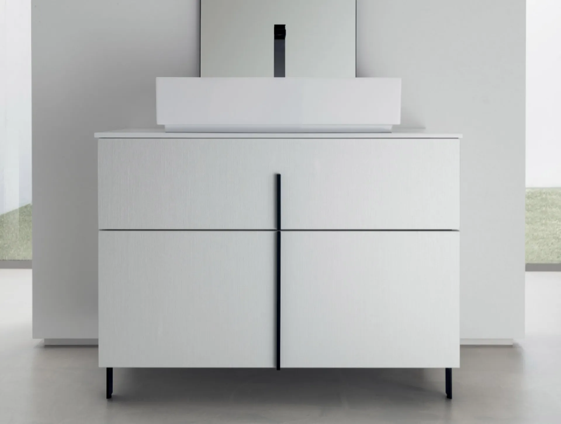 A practically infinite range of available finishes and design shades distinguish the furnishings of the well-known and renowned brand, synonymous with excellence in the field. The Bathroom Furniture programs from the Compab brand guarantee great opportunities for customization, exclusive design, plenty of ergonomics, and safety. Each proposal of modern Bathroom Furniture with freestanding bathroom furniture from the brand contributes to making the destination area a living space. The B201 BD004 Freestanding Bathroom Furniture model from Compab, made of melamine, is suitable for equipping a beautiful, functional, and easy-to-use area. The melamine model we present is designed to furnish the bathroom by combining excellent functionality and style. Remarkable attention to detail guarantees the excellence that characterizes every series of freestanding bathroom furniture from Compab available from us.
