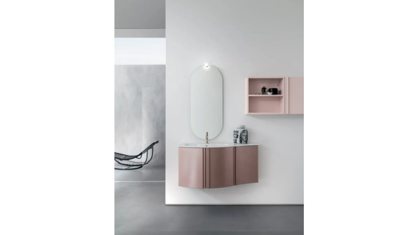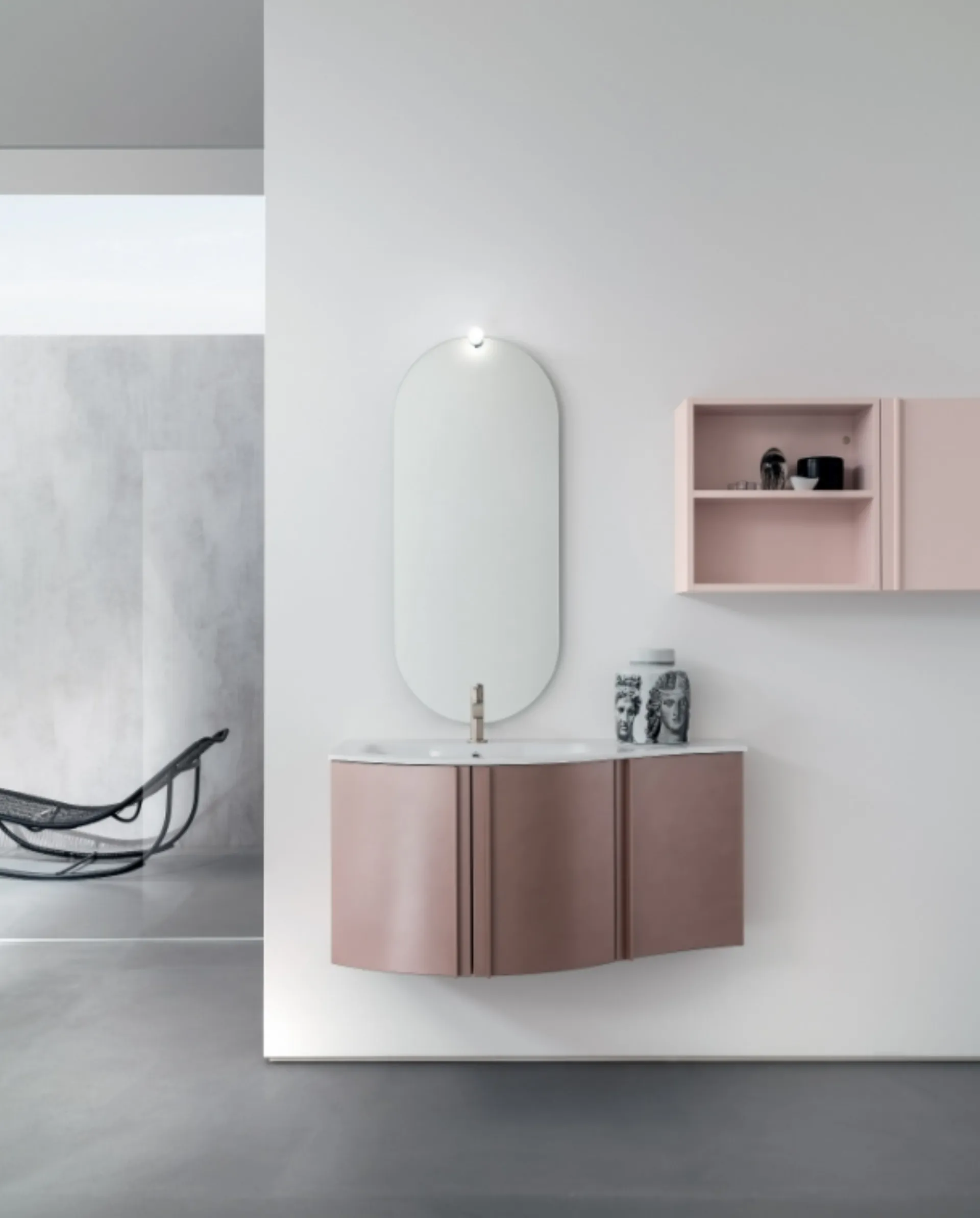 Il mobile da bagno sospeso Mobile da Bagno sospeso B201 BD025, parte dell'innovativa collezione B201 di Compab, si distingue per la sua costruzione robusta con struttura e frontali in laccato opaco. Offre un'ampia scelta di finiture, inclusi toni sofisticati come Petalo e Malva, permettendo una personalizzazione estetica. La configurazione standard comprende un elegante lavabo consolle 'Versus' in Mineralguss da 106 cm, completato da una specchiera 'Sigma' e un faretto 'Lumen' per un'illuminazione ottimale. Le finiture disponibili spaziano dalle laccature opache e lucide ai rivestimenti materici, come il pregiato Rovere Raw impiallacciato. Questo mobile è progettato per garantire durabilità e un'estetica raffinata, assicurando un investimento che perdura nel tempo.