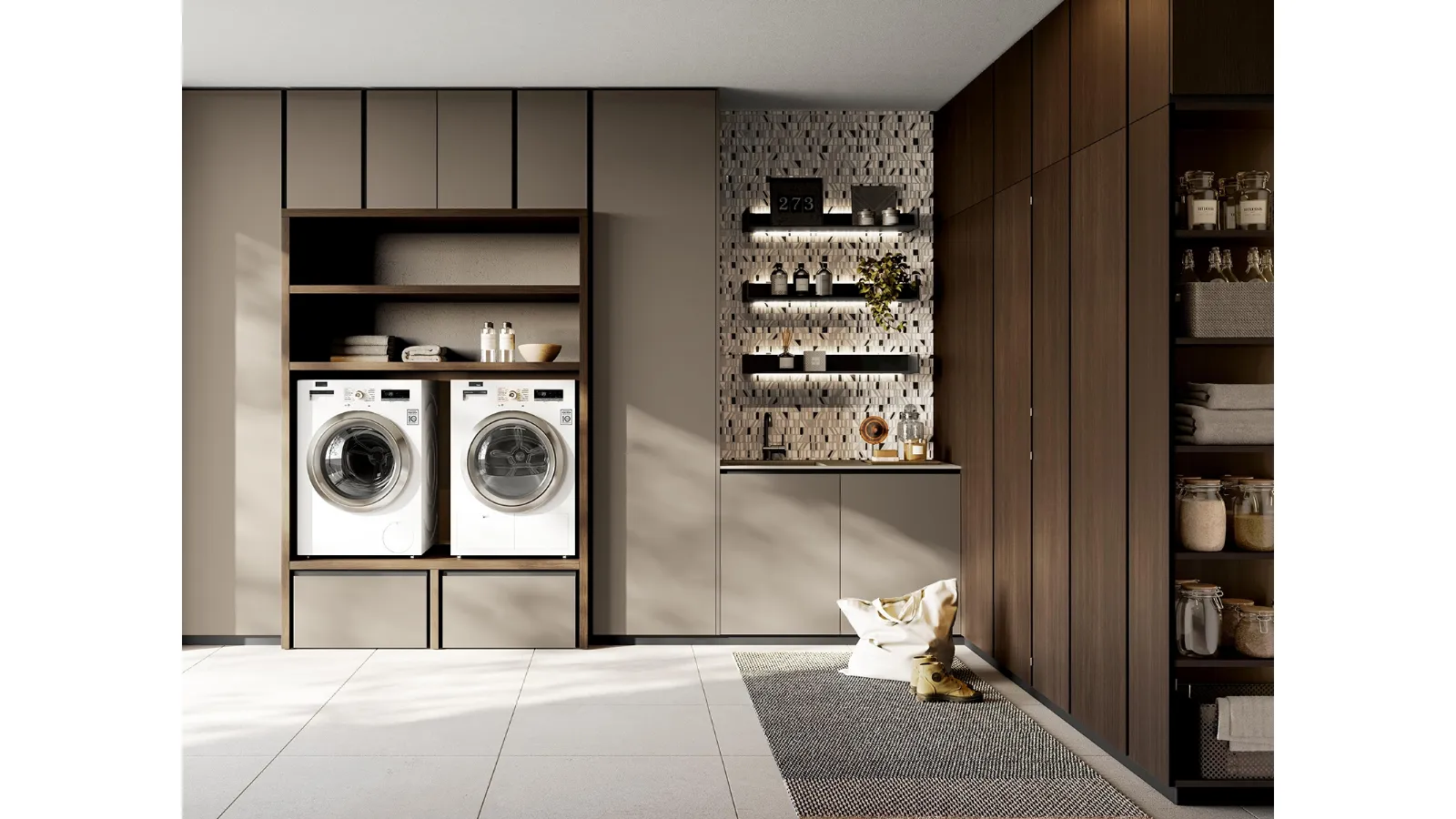 Il mobile contenitore Idrobox 01 di Birex, parte della collezione Idrobox, è una soluzione versatile e modulare per l'arredo lavanderia. Ideale per l'alloggiamento di lavatrice e asciugatrice, si distingue per la sua funzionalità avanzata e un design dall'estetica pulita. La composizione include un elemento a giorno con due vani e due cassettoni dotati di pratiche ruote per una movimentazione agevole. La struttura portante è realizzata con pannelli in fibre di legno di 4 cm di spessore, mentre i pannelli dei cassetti hanno uno spessore di 18 mm, garantendo robustezza. È possibile personalizzare l'elemento contenitore e i cassettoni scegliendo tra diverse finiture e colorazioni per adattarsi a ogni stile. Questa proposta d'arredo incarna la sintesi perfetta tra design innovativo e ottimizzazione degli spazi, pensata per durare nel tempo.