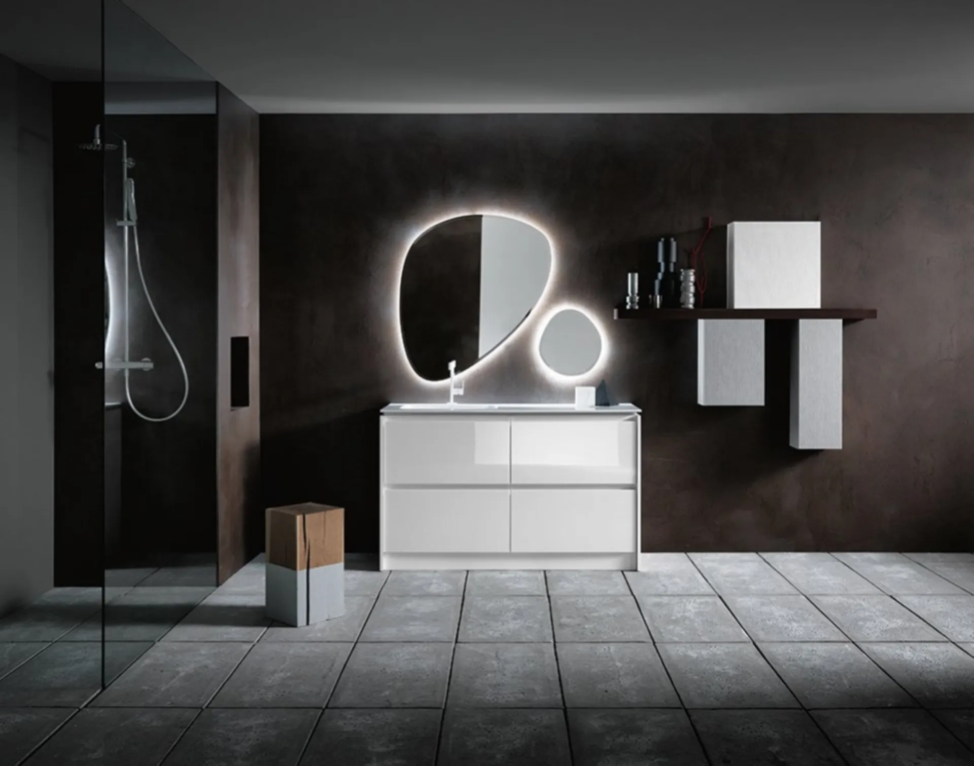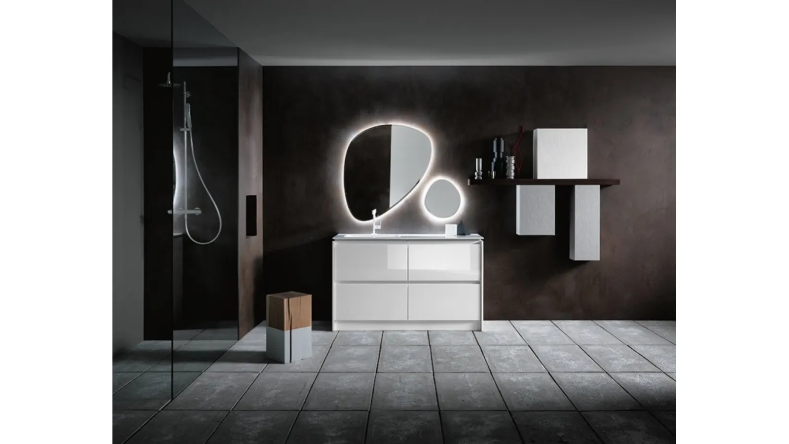 Compab Bathroom Furniture: discover a rich range of free-standing bathroom furniture in glossy lacquer, including the INK NK09 model