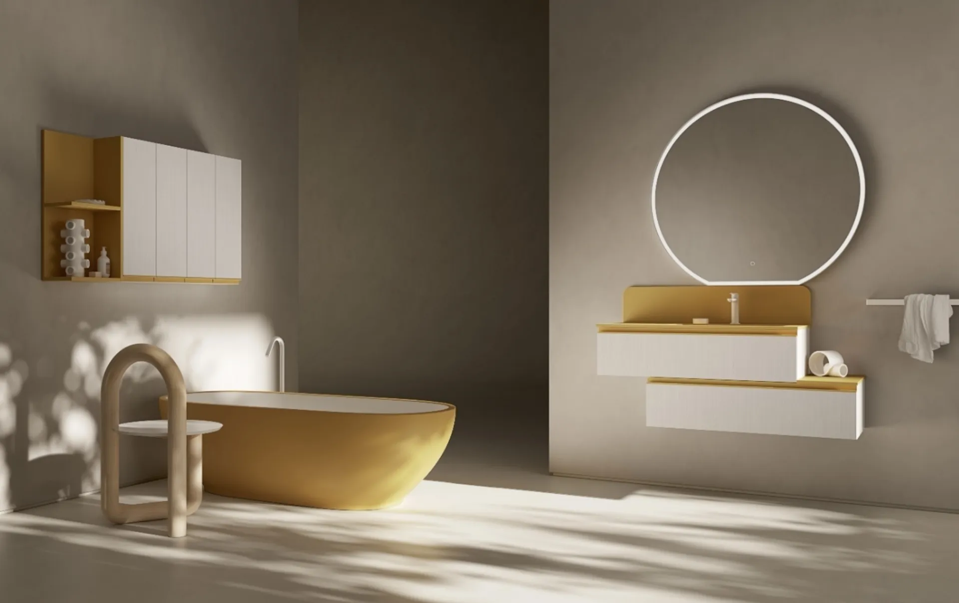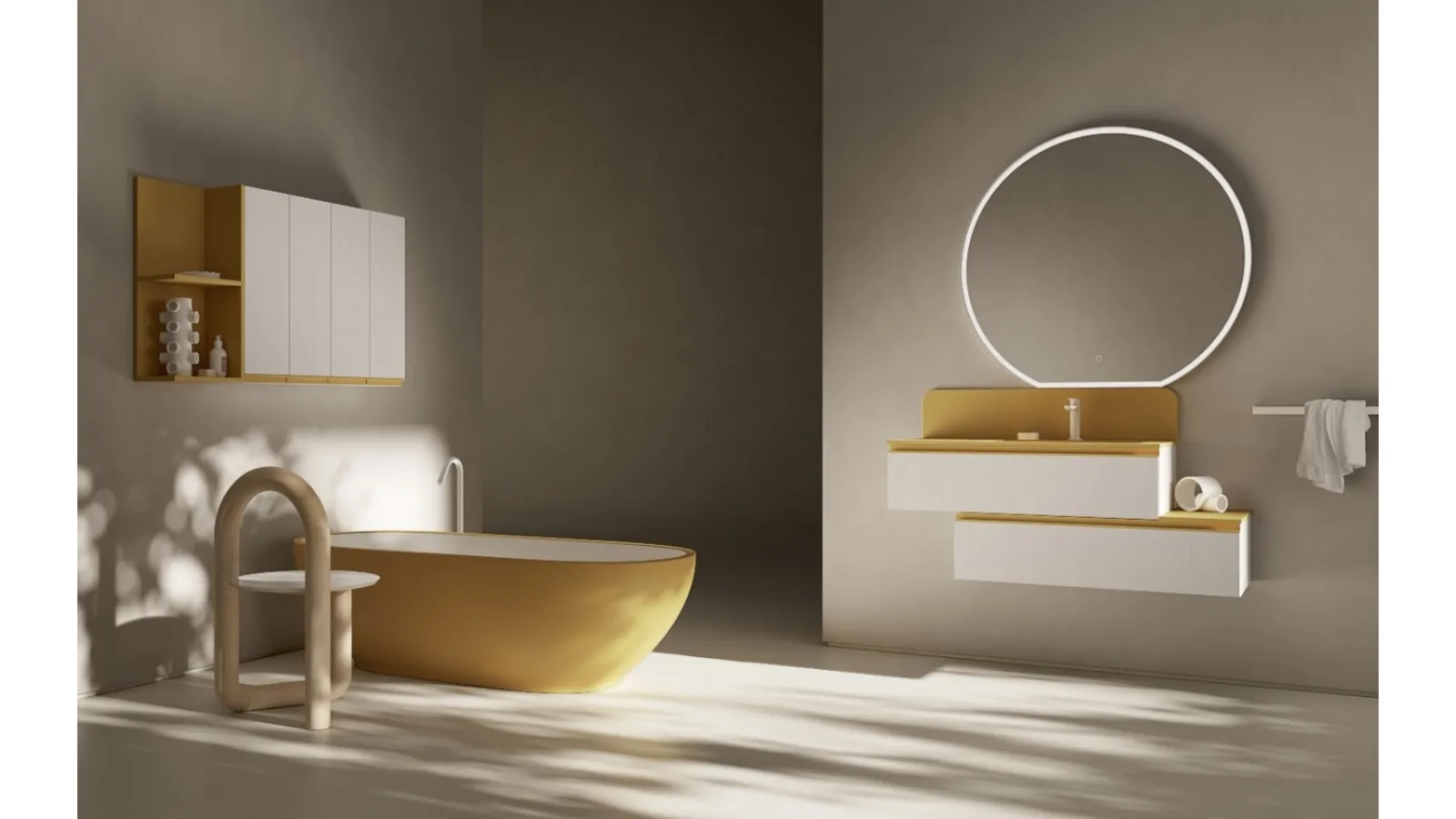 Il Mobile da Bagno IPE IP01 di Compab è proposto con un servizio di progettazione e installazione professionale. Questo elemento della collezione Ipe, con struttura in nobilitato Reflex Perla e laccato opaco G7 Ocra, è pensato per adattarsi perfettamente ai tuoi spazi. Il lavabo consolle 'Ibiza' in Minera-Kolor e la specchiera PLY-CIRCLE sono inclusi, garantendo una soluzione completa e armoniosa. Offriamo consulenza personalizzata e consegna puntuale in diverse località, inclusi Monza, Lugano, assicurando un'esperienza d'acquisto senza pensieri. La nostra assistenza post-vendita e la garanzia sul prodotto ti assicurano una soluzione d'arredo completa e affidabile nel tempo.