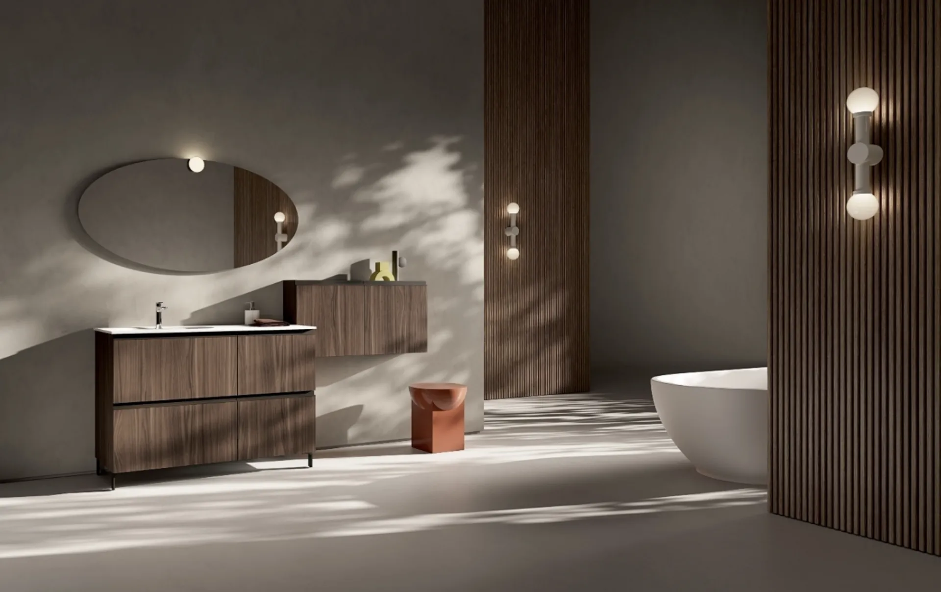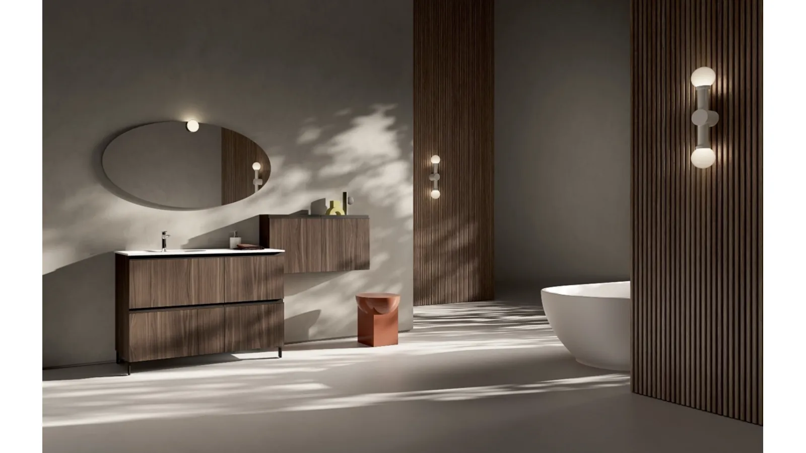 Il sistema d'arredo bagno IPE IP12 di Compab rappresenta una sintesi esemplare di estetica e funzionalità. Questo mobile si distingue per l'impiego di materiali di alta qualità come il nobilitato Hazelnut 280 per struttura e frontali, abbinato a un sofisticato lavabo consolle ovale 'Rugby' in Corian bianco opaco, con una larghezza di 121 cm. La configurazione standard è completata da una specchiera modello FIT e un faretto SOLAR, elementi che accentuano le linee pure e le maniglie integrate, contribuendo a un'estetica complessiva di rigore minimale ed eleganza intrinseca. Ogni componente è studiato per garantire elevate prestazioni e un'installazione ottimizzata, riflettendo un'attenzione meticolosa ai dettagli costruttivi.