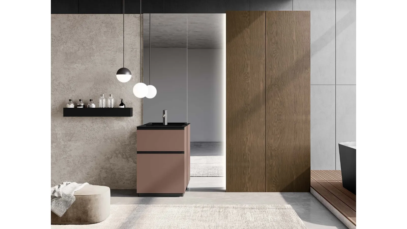 Discover our series of modern bathroom furniture and free-standing bathroom furniture in matt lacqu