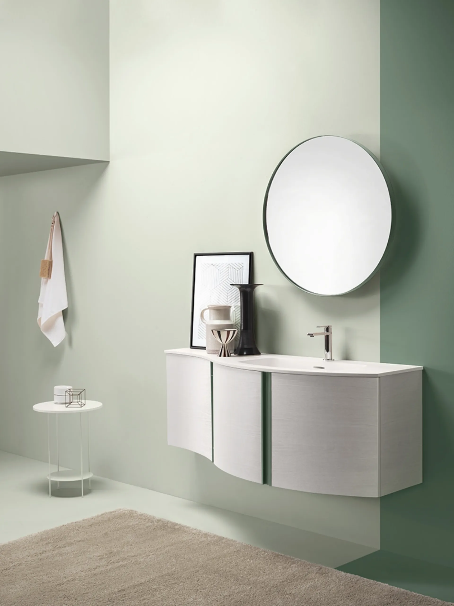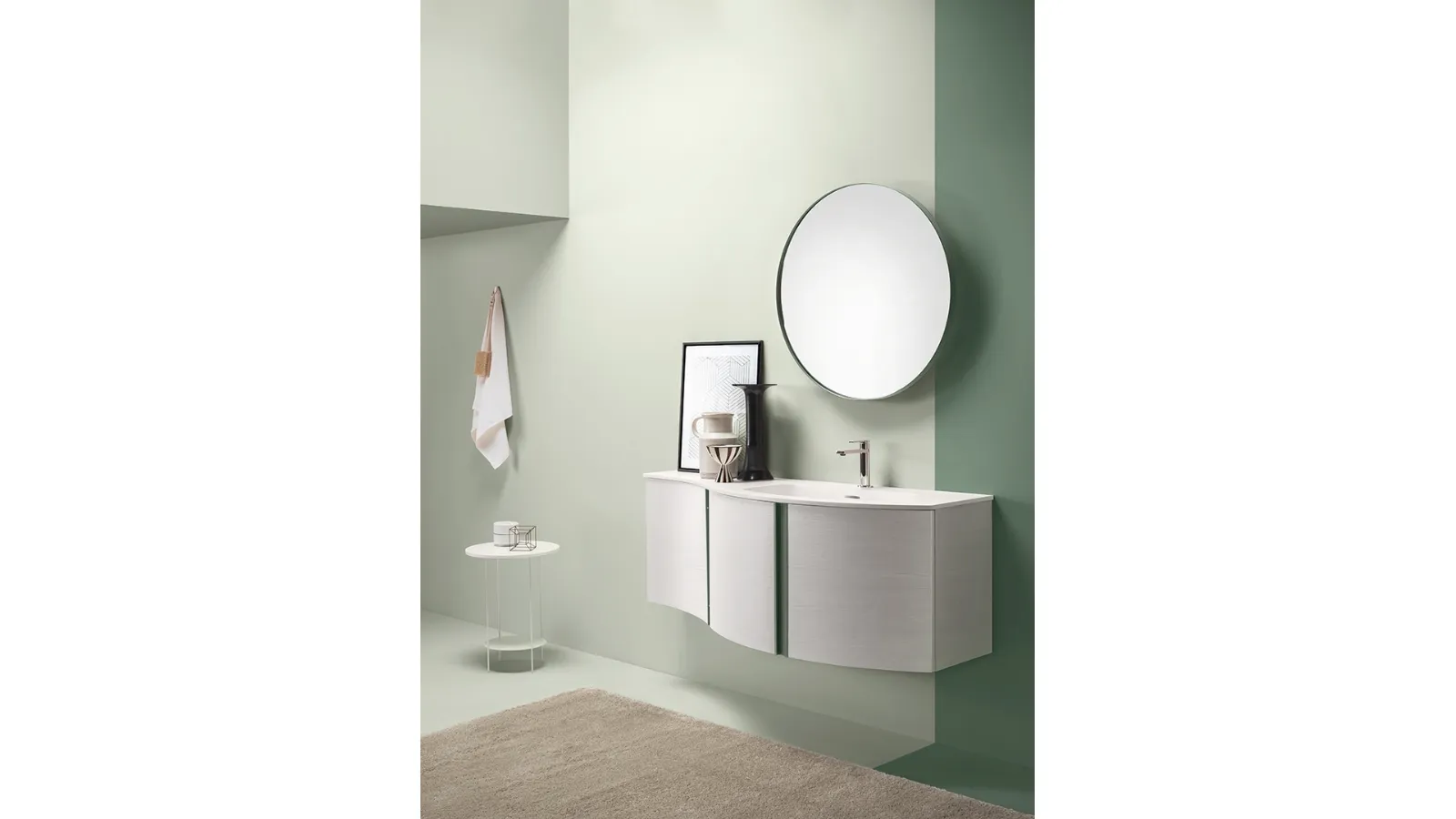 The colors, finishes, and modules that the brand offers for modern bathroom furniture with suspended bathroom furniture give the possibility to decorate various contexts. With an infinite number of compositions from the Ardeco brand, you can decorate the bathroom down to the smallest details, solving your living problems. Home bathrooms change both in elegance and size, so it is essential that everyone finds the ideal solution for their needs. Here we present the model of the Round White Obsession Bathroom Cabinet by Ardeco in matte lacquer, which perfectly characterizes the space, ensuring functionality. Each project developed with the brand's products can be customized with suspended bathroom furniture of all kinds, always made of first-choice and resistant materials. The bathroom is the place dedicated to well-being and personal care practices, so it should be furnished by mixing practicality and design.