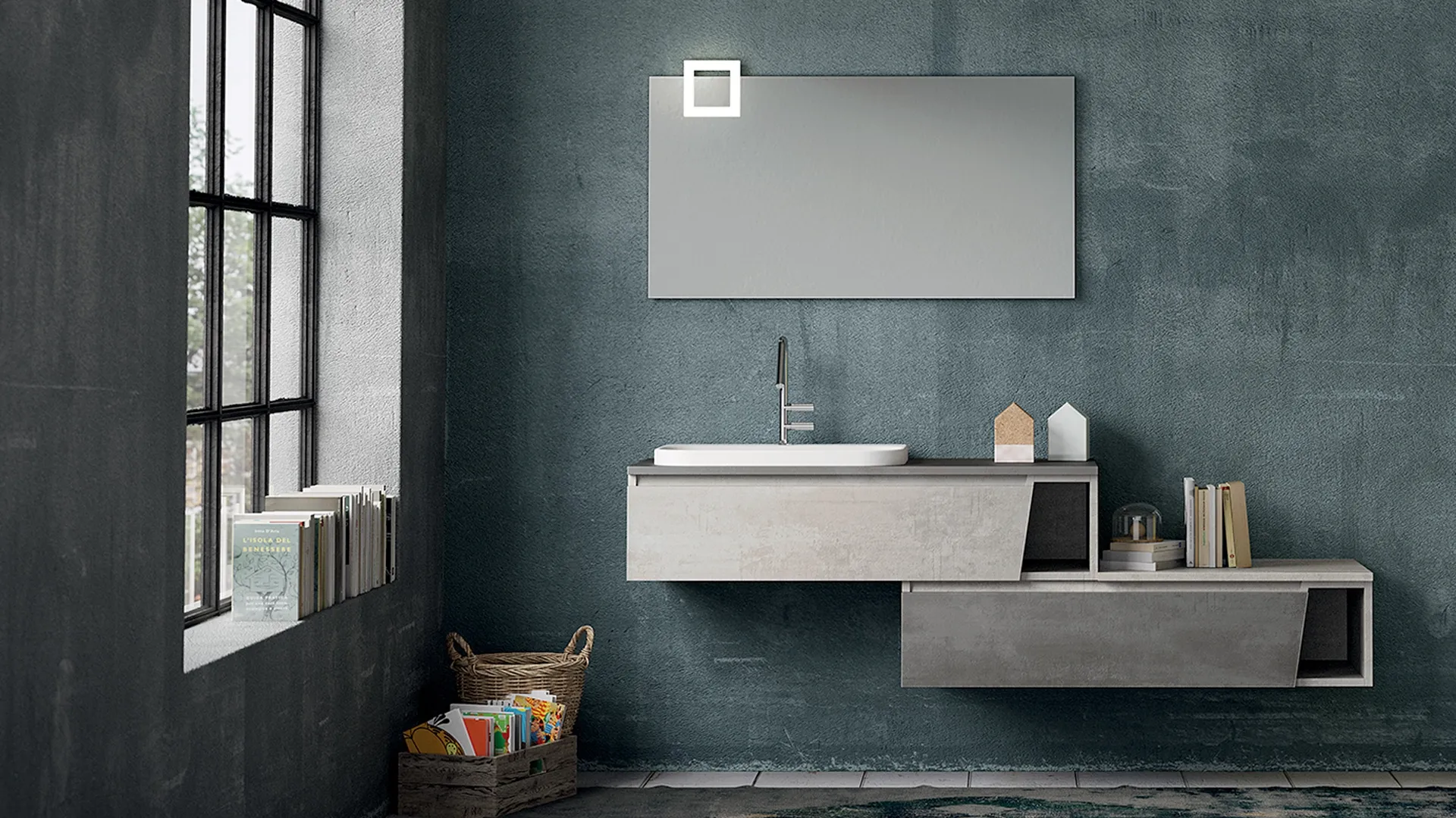 Discover our series of modern bathroom furniture and suspended melamine bathroom furniture, such as the Seven 10 model