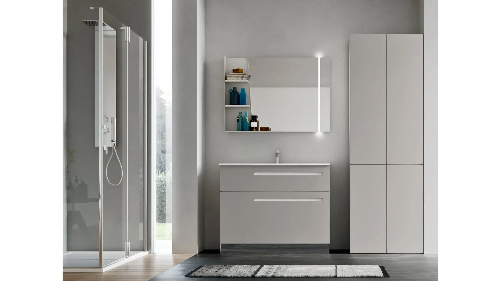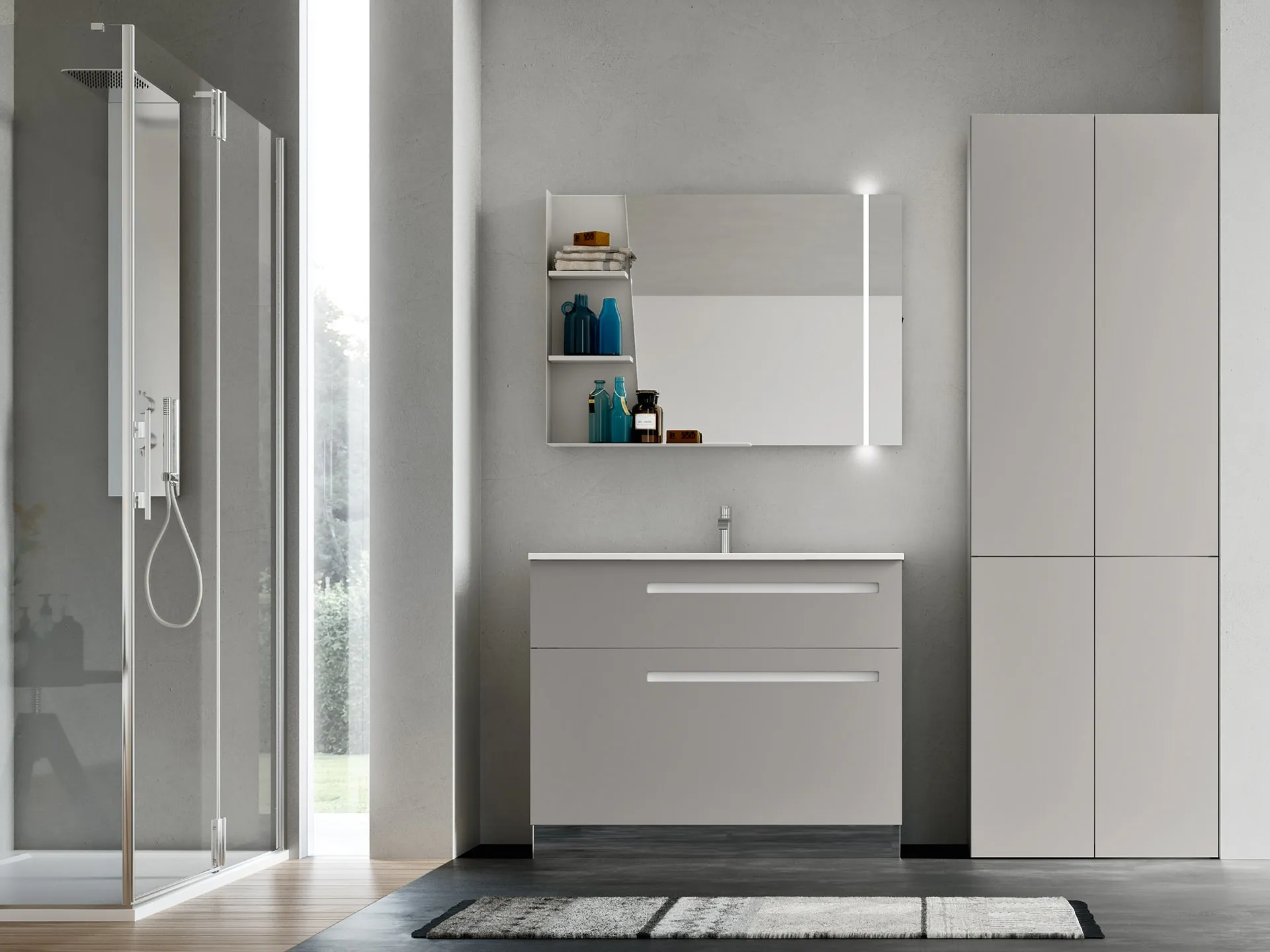 Discover our collection of modern bathroom furniture and bathroom furniture for laundry rooms in matt lacquer, such as the Start Wash 02 model
