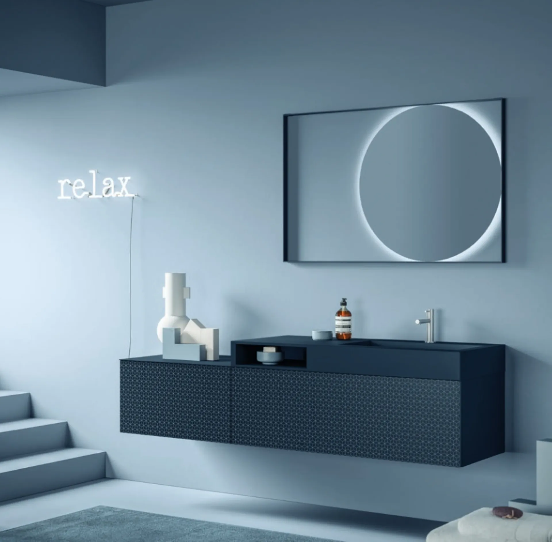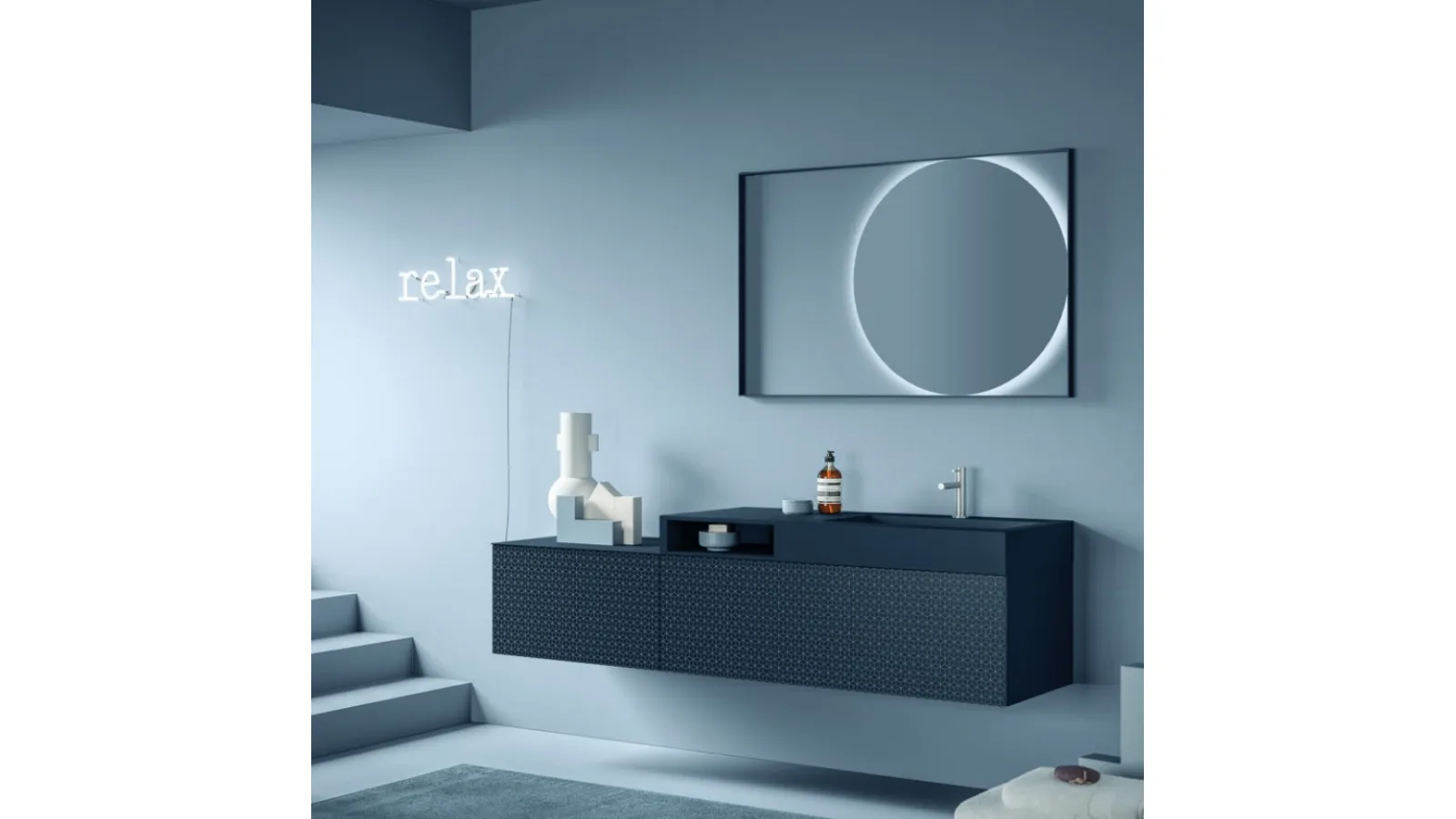 Discover our series of designer bathroom furniture and suspended bathroom furniture in matt lacquer, such as the Vintage 01 Deep Blue model