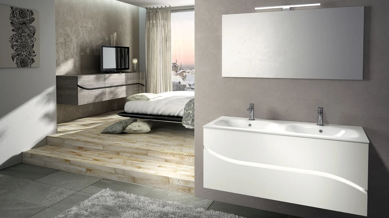 Suspended bathroom furniture Onda 01 composition by Licor Design