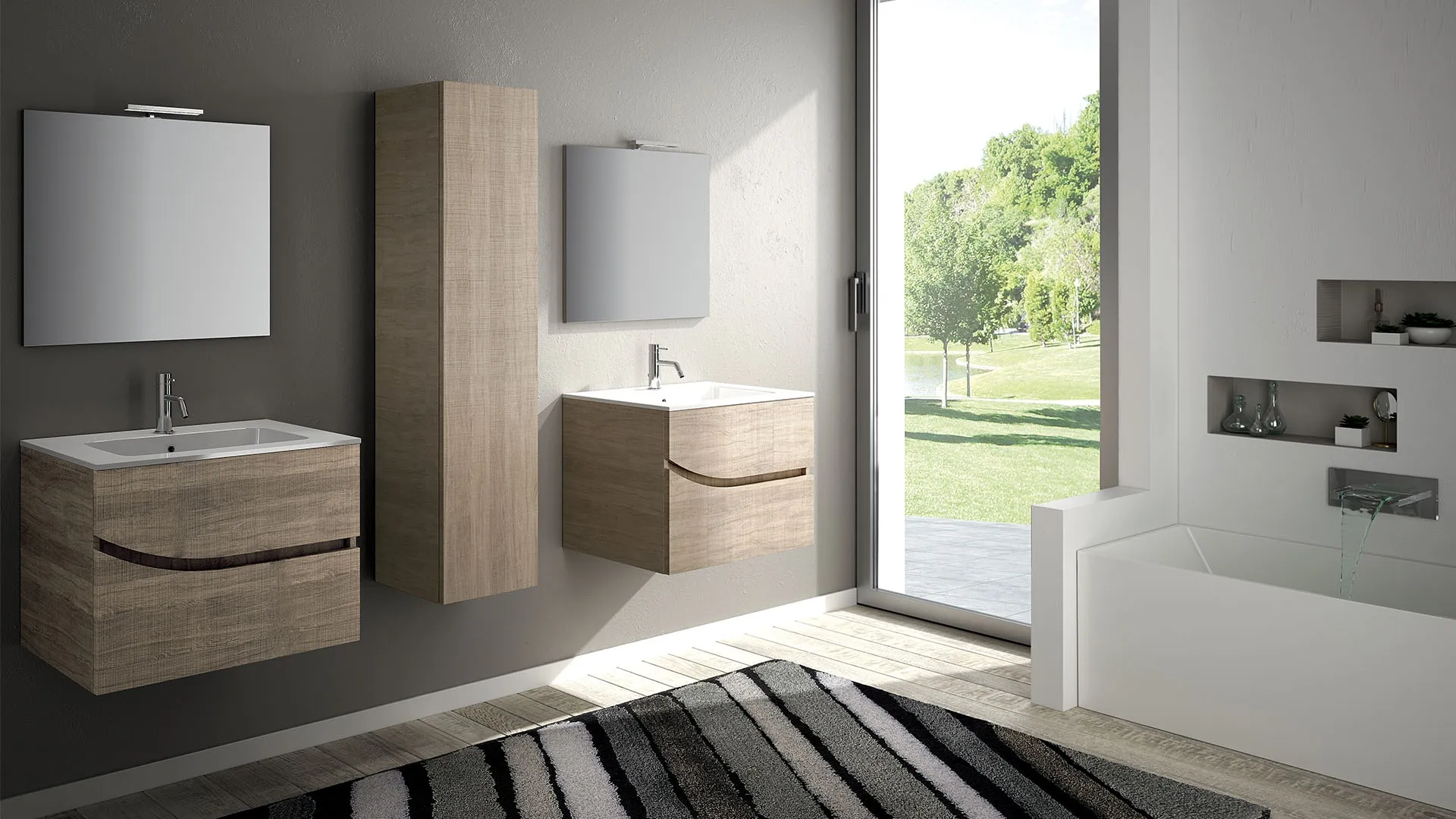 Suspended bathroom furniture Onda 04 composition by Licor Design