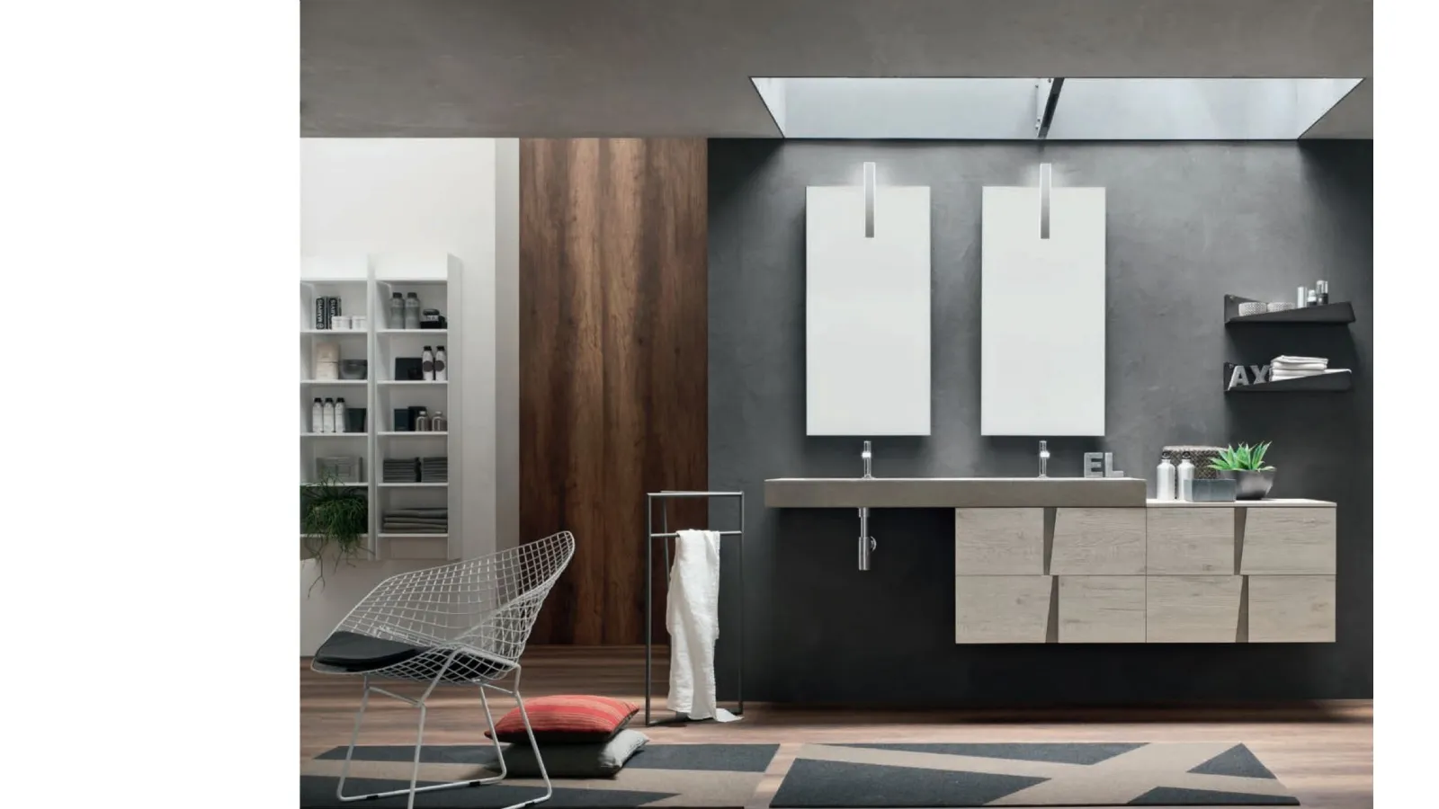 Quali materiali e finiture sono disponibili per il mobile bagno Wector 15?Il mobile bagno Wector 15 può essere realizzato in diverse finiture come laccato, legno o laminato. Rusconi Arredamenti s.r.l. offre una materioteca per visionare e scegliere i campioni di materiali più adatti al tuo stile.
