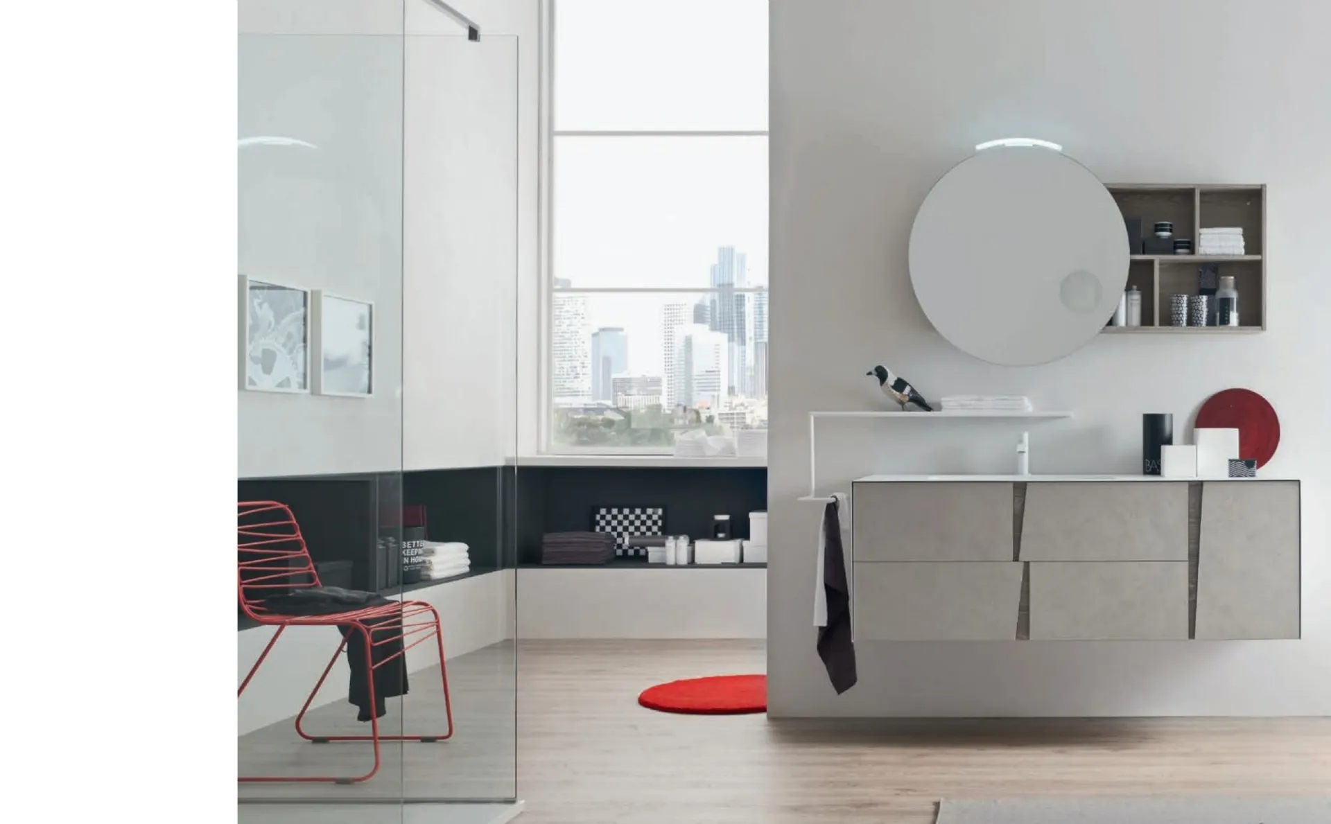 Discover our line of modern bathroom furniture and suspended melamine bathroom furniture, such as the Wector 16 model