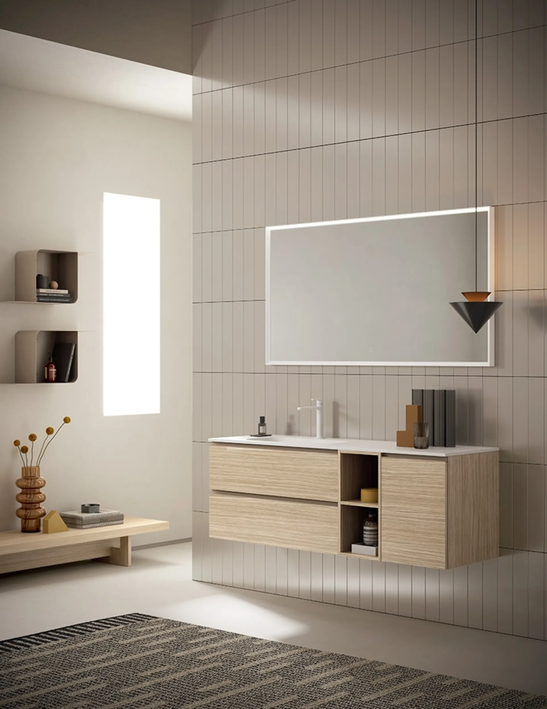 Ardeco Bathroom Furniture: discover a rich catalog of suspended melamine bathroom furniture, including the Yang 04 model