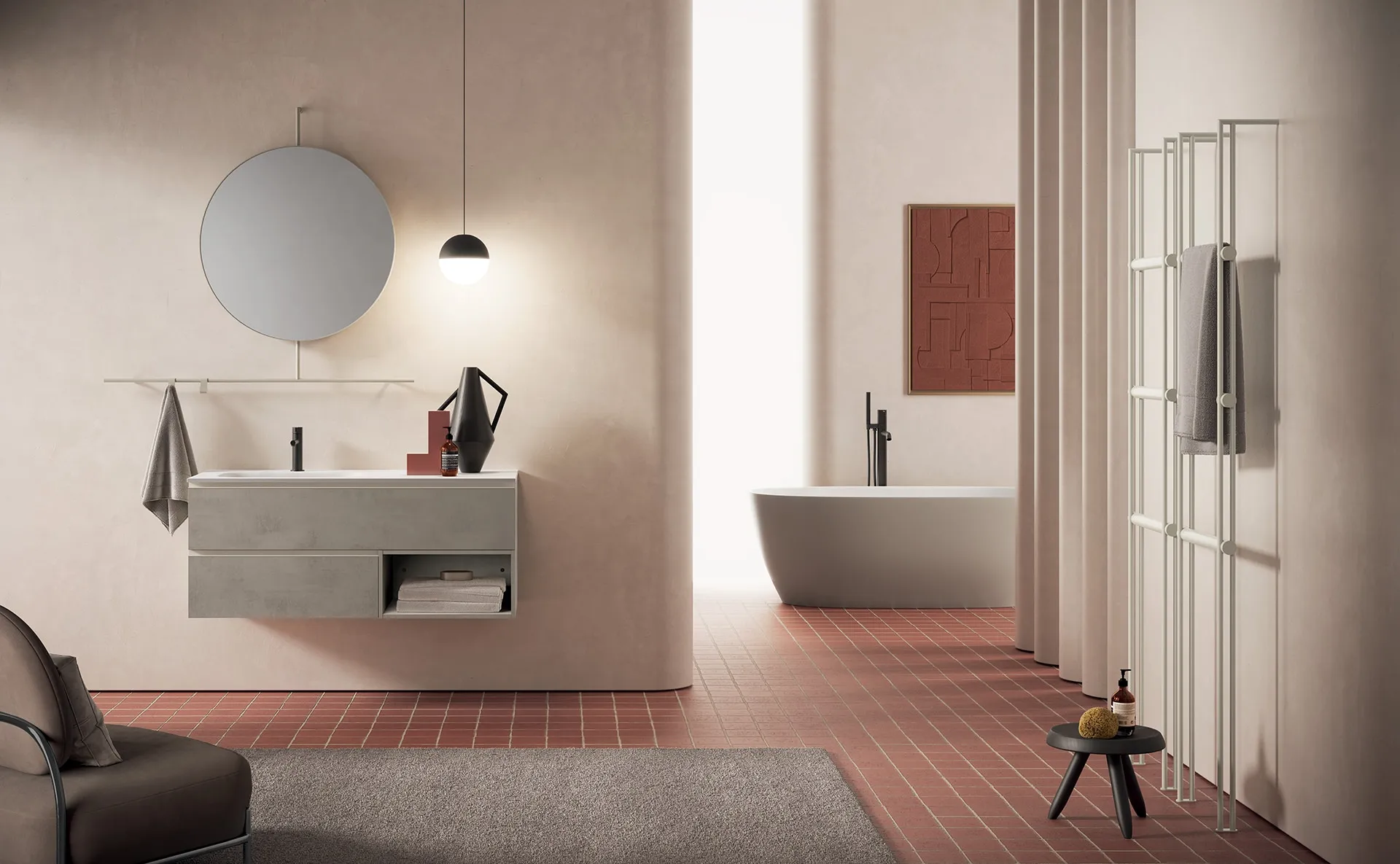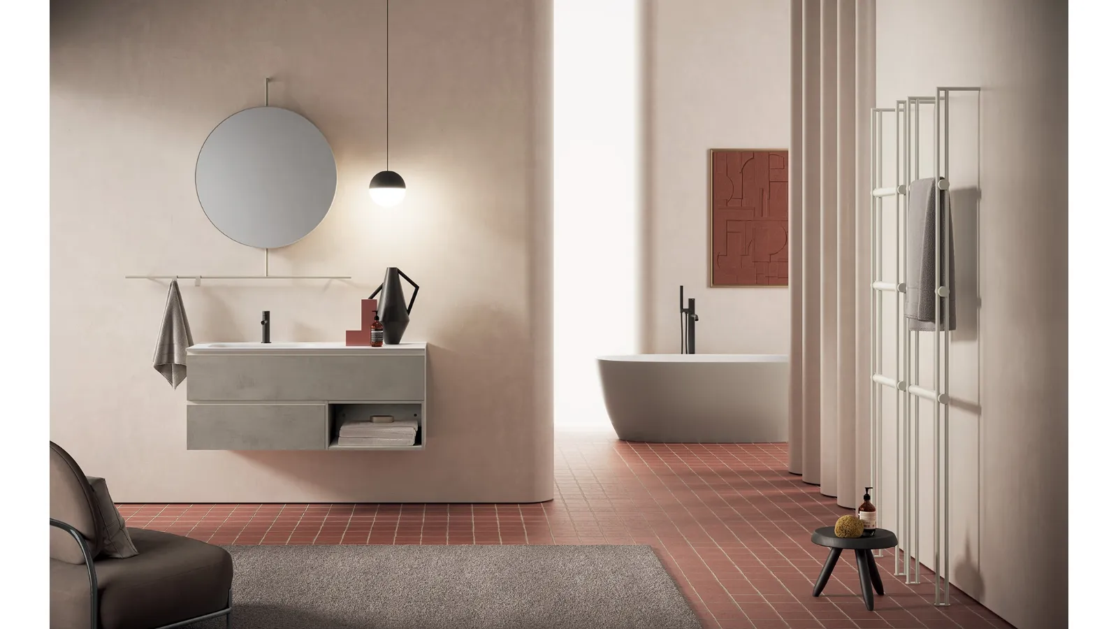 Modern Ardeco Bathroom Furniture: choose this melamine model among various proposals of suspended bathroom furniture.