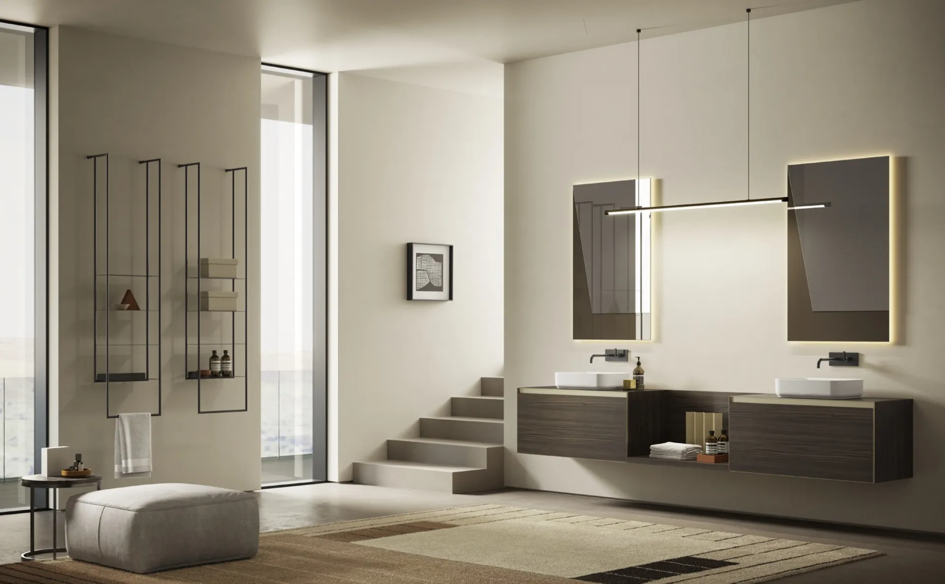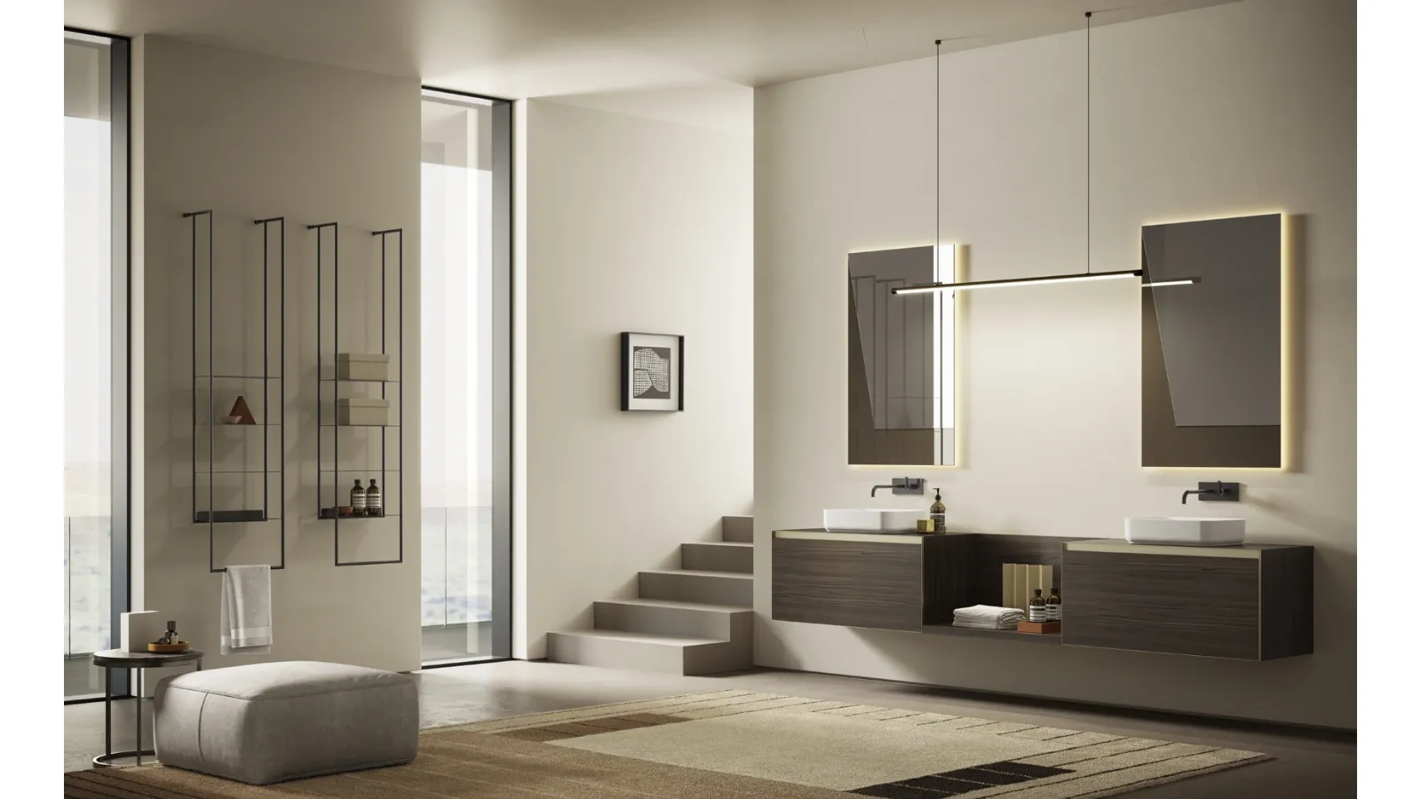| Materiale: | Melaminico, Vetro, Specchio, Gres porcellanato, Laccato, Essenza lignea, Geowood Moka, Nickel, Ceramica |