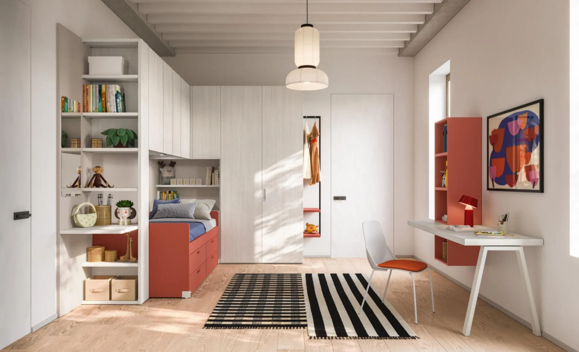 La Cameretta Ponte 33 di Mistral è un sistema d'arredo concepito per offrire massima versatilità e funzionalità. Progettata per ottimizzare gli spazi, è ideale per camerette di bambini e ragazzi, distinguendosi per un design intelligente e soluzioni pratiche. Disponibile in diverse finiture estetiche, come Sbiancato, Tortora e Corallo, con un interno sempre in Sbiancato per una coerenza visiva. Ogni dettaglio è studiato per garantire durabilità e un'esperienza d'uso superiore. L'architettura modulare e le opzioni di personalizzazione avanzate rendono questa soluzione adattabile a ogni esigenza, riflettendo l'innovazione dei migliori marchi del settore.