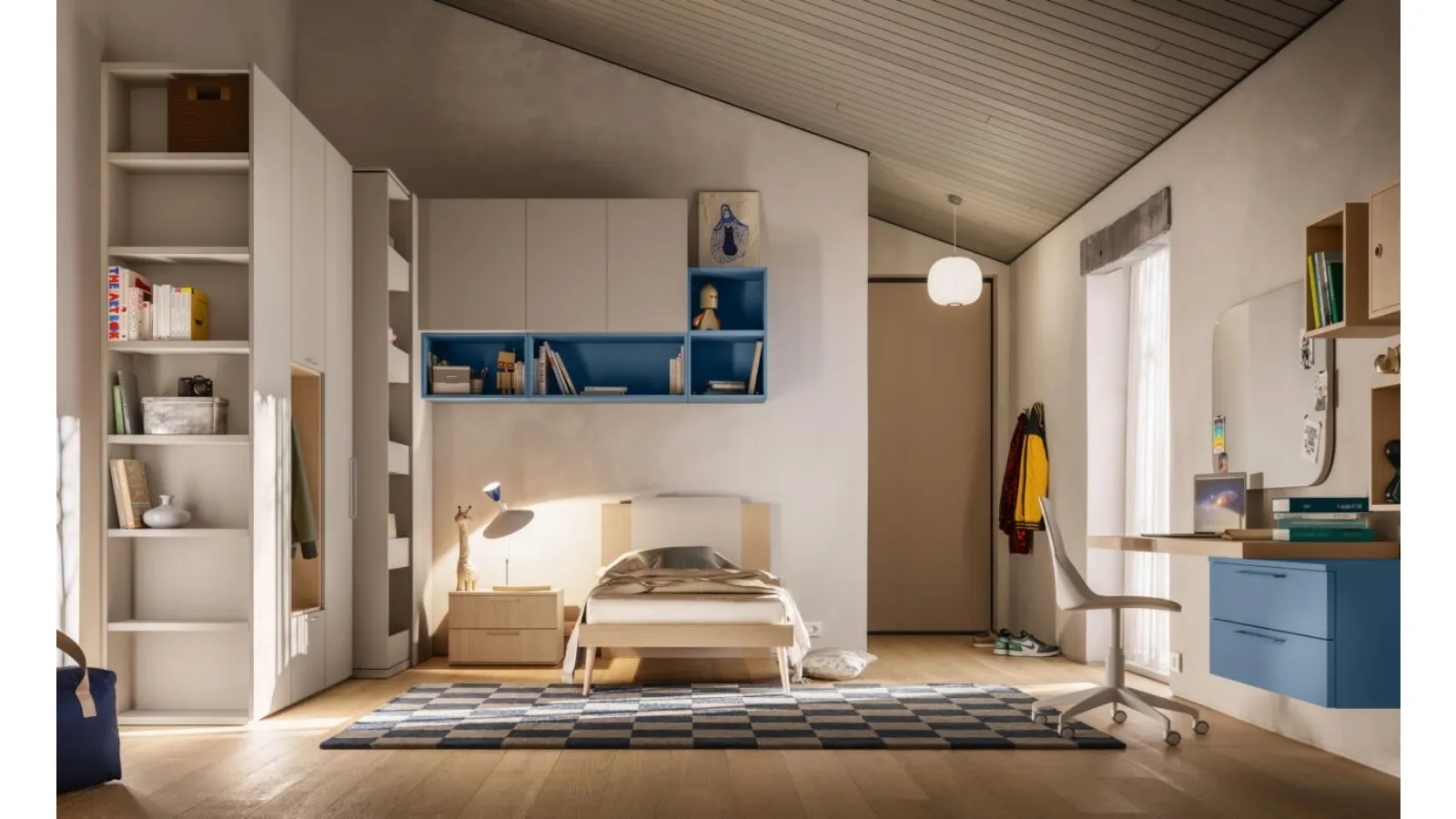 The available accessory elements for Mistral's modular bedrooms are always customizable, to avoid any problems with space and functionality. If the room is small, Mistral offers different solutions that combine ergonomics and safety. Discover in our store the Mistral Ground Bedroom 07 in melamine: it is perfect for creating a welcoming, beautiful, and well-organized environment. Durable materials and non-toxic paints distinguish the brand's proposals, including modern modular options ideal for you. The modular bedrooms for children from the well-known and renowned brand are available in multiple versions, always meeting the children's demands.