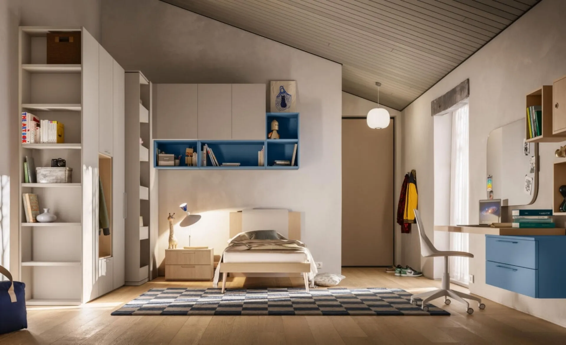 Scopri la Cameretta Letto a Terra 07 di Mistral, una soluzione d'arredo completa e versatile, ora disponibile presso il nostro showroom Rusconi Arredamenti s.r.l. a Cirimido. Questa composizione, parte della rinomata collezione 'Letti a terra', è pensata per arredare con stile e funzionalità la stanza dei ragazzi. Presso il nostro punto vendita potrai apprezzare dal vivo la qualità dei dettagli che includono un comodo letto Flipper L.90, pratici box pensili, un armadio Covert con libreria scorrevole e un armadio battente con anta Liscia. Elementi aggiuntivi come il vano a giorno, il terminale libreria, la consolle a muro, un box pensile con cassetti, una specchiera e casellari Qubo completano un ambiente giovane e dinamico. Il design italiano di Mistral è a tua disposizione, con un servizio dedicato che si estende anche a Monza e alle zone limitrofe, garantendo un'esperienza d'acquisto senza pari. Le finiture Arena, Tortora e Cobalto ti permettono di personalizzare ogni dettaglio, creando lo spazio ideale per i tuoi ragazzi. Ti invitiamo a visitare il nostro showroom per scoprire perché tanti clienti scelgono Rusconi Arredamenti s.r.l. per soluzioni d'arredo di alta qualità.