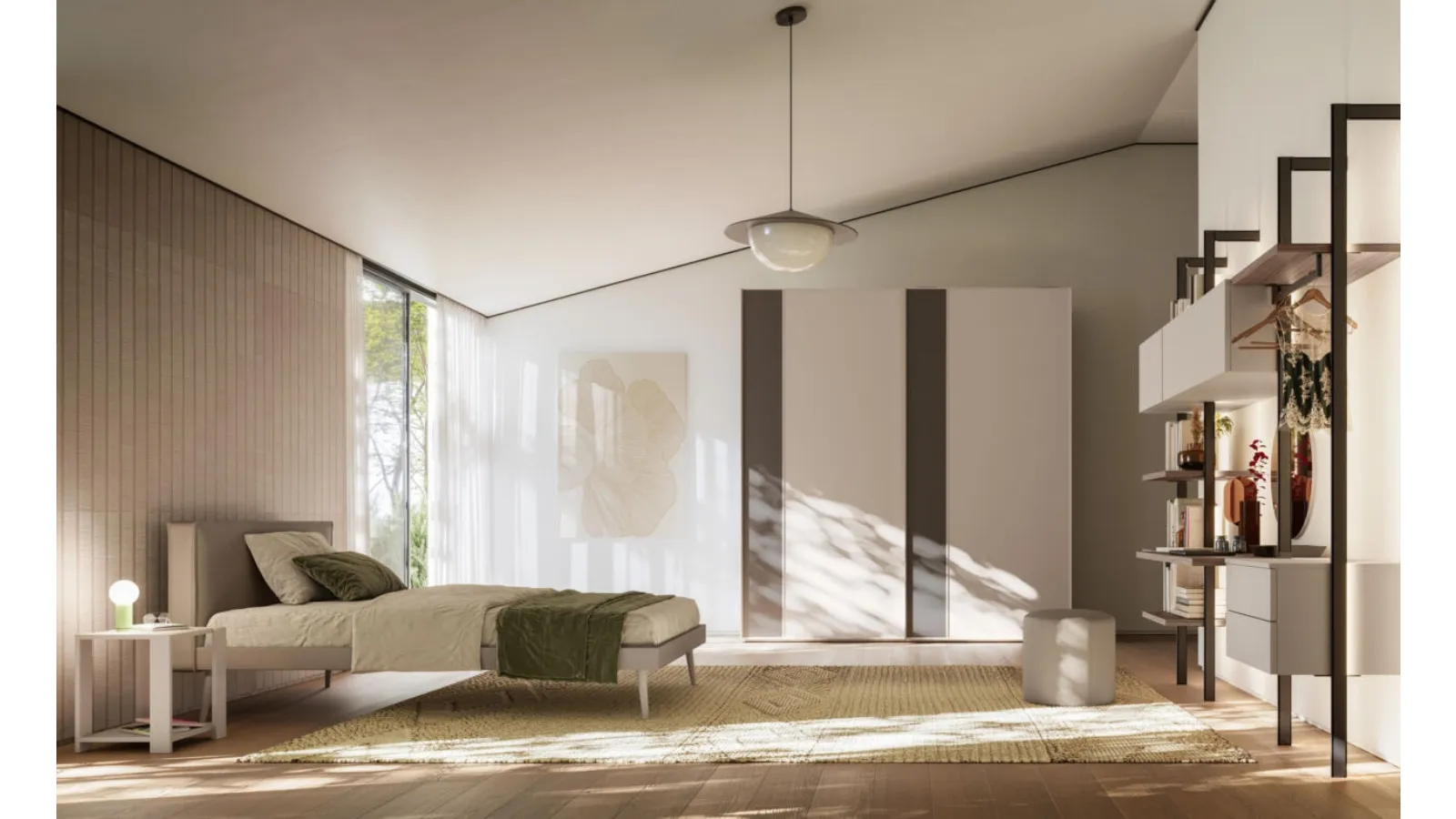 This melamine solution enhances the functionality and aesthetic value of the bedroom, as it is able to combine ergonomics and safety. Turn to us for the furnishing of your children's room: in our showroom, we offer all the most beautiful modern compositions for their room. Mistral offers a wide range of accessories to be customized: you will find a bed, wardrobe or walk-in closet, desk, chairs, and bookshelves. Bring aesthetic content and vibrant colors into the room dedicated to the youngest with this proposal, one of Mistral's modular bedrooms for boys. If you are looking for creative ideas to organize your children's room, we recommend Mistral's Floor Bed 19 Bedroom with a melamine finish.