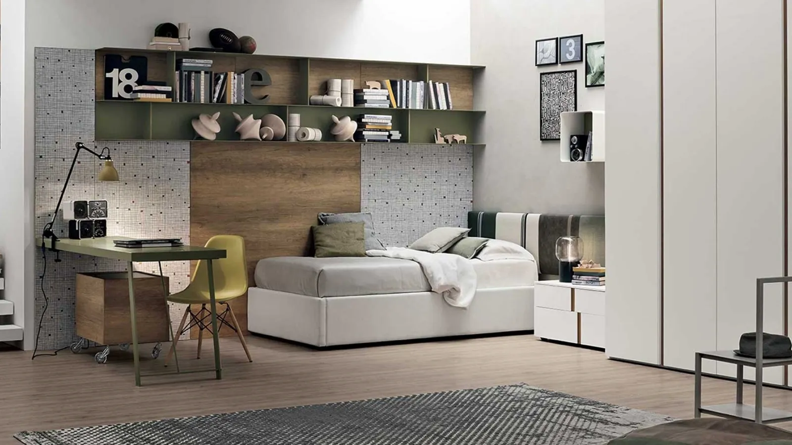Quali elementi sono inclusi nella Composizione 02 di Tomasella per camerette?La Composizione 02 è una soluzione modulare Tomasella pensata per bambini e ragazzi. Può includere letto, armadio, scrivania e libreria, offrendo modularità e crescita nel tempo per adattarsi a ogni esigenza.