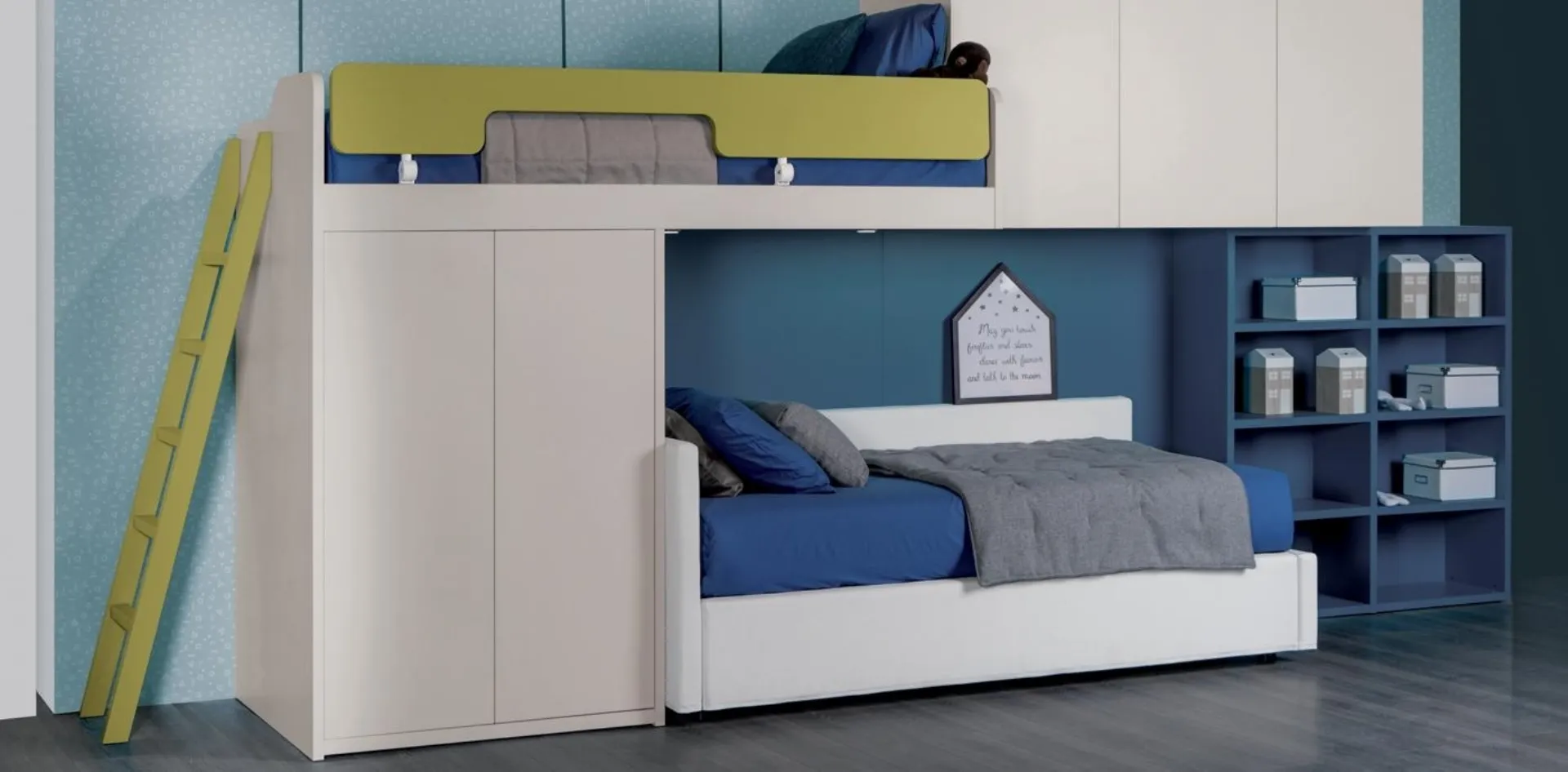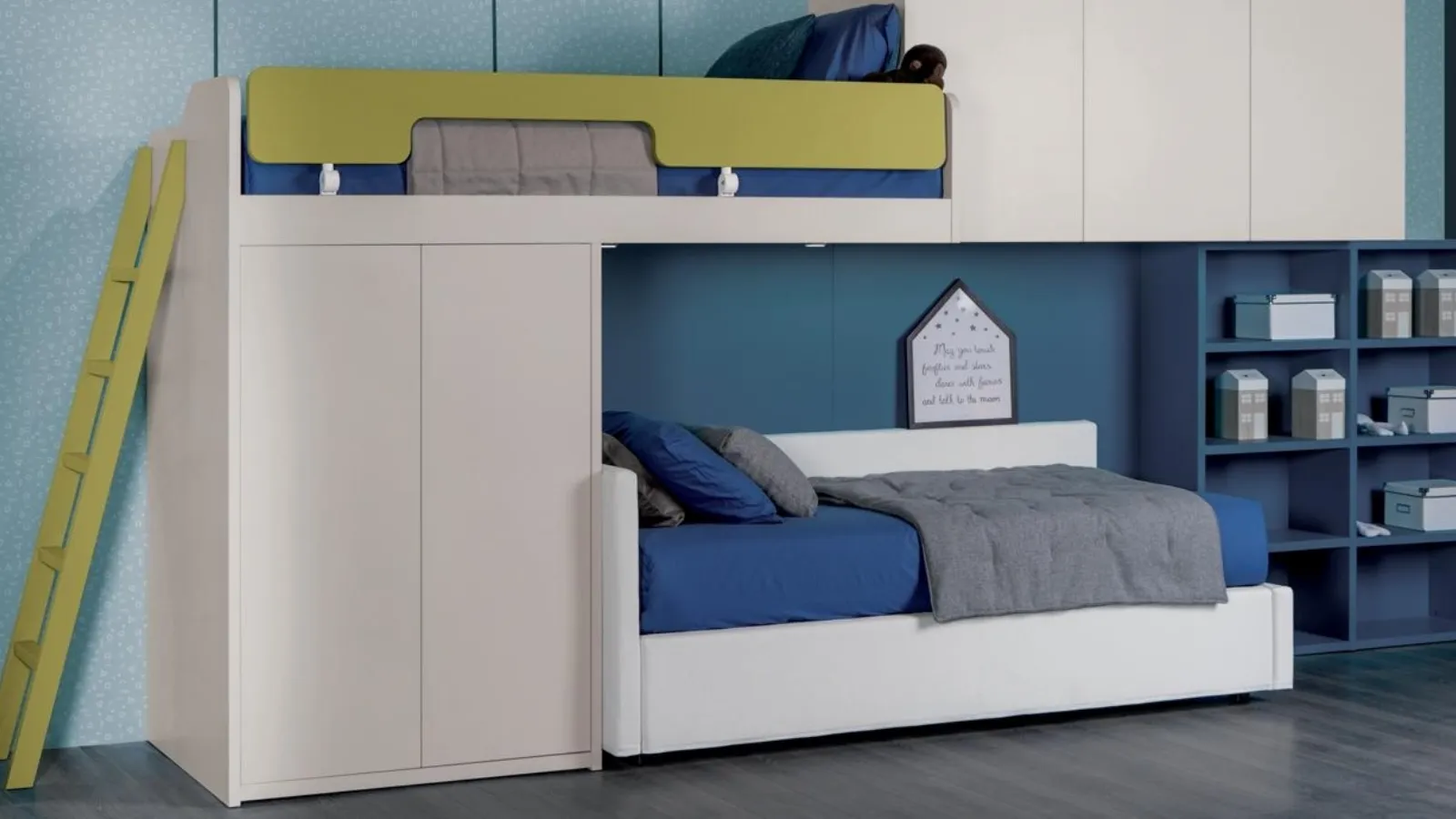 Come to our showroom and you will be able to see firsthand all the most beautiful modern loft furniture compositions by Spagnol Mobili for the youngest. The mezzanine bedroom Composition 705 by Spagnol Mobili in matt lacquer is a complex universe to be furnished with care, combining various custom-made accessory elements. Spagnol Mobili satisfies the style of children and the needs of parents with its modern mezzanine bedrooms, ideal for needs of all kinds. Trendy colors and excellent articulated projects characterize the most beautiful offers of the well-known and well-known brand that we present in our showroom. With a Spagnol Mobili furnishing composition, you will be able to complete the place where your children spend the fundamental years of their lives with functionality and design.