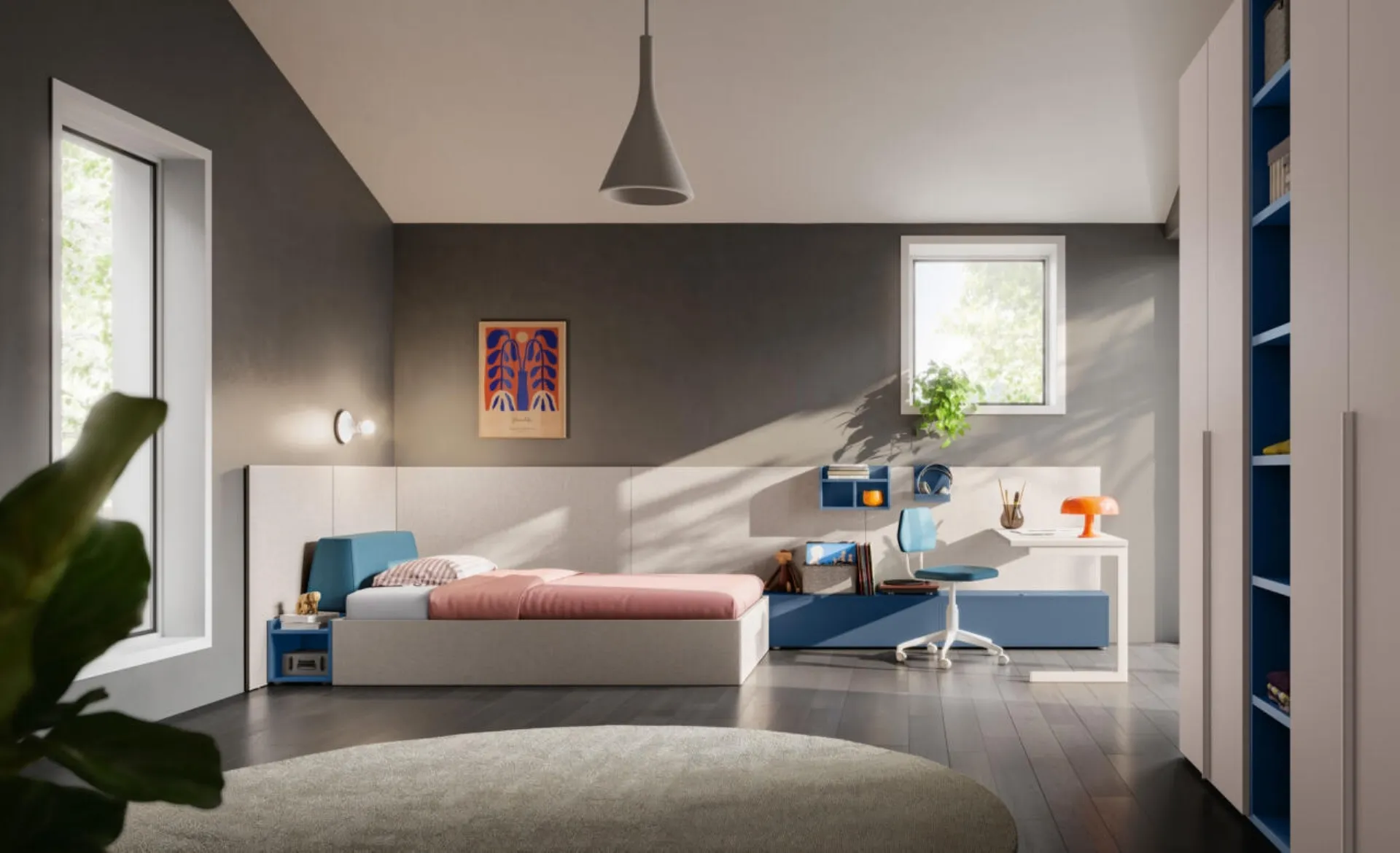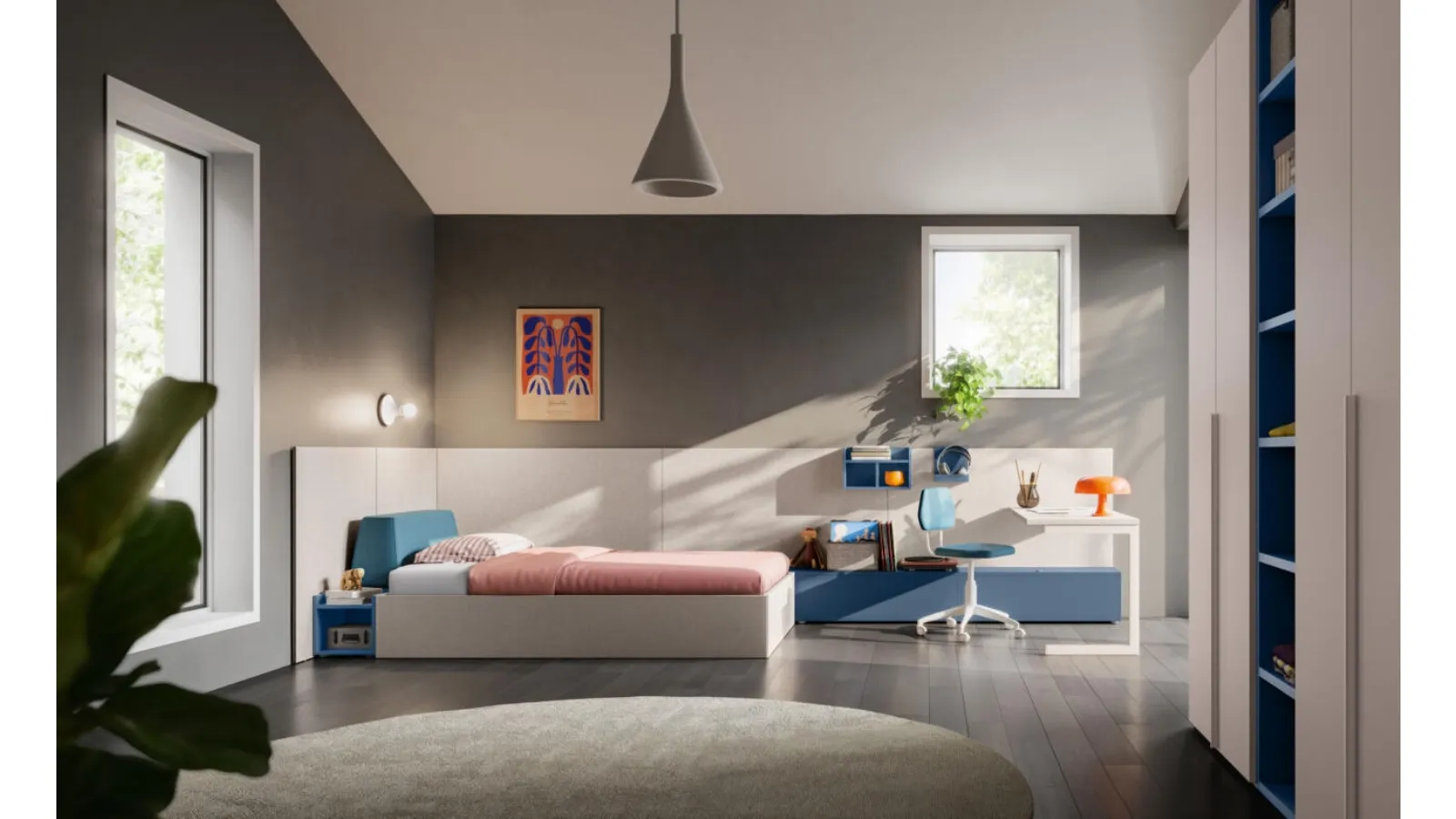 The well-known brand produces various modern solutions, so the children's room is a space where children will have the opportunity to grow and rest. This proposal with a melamine finish, among the modular options for children by Mistral, meets the demands of adults and the tastes of children. Coming to the store means seeing in person all the most exclusive modular melamine solutions for children that we offer in our showroom. With the Mistral Composition Ground Bed 03 Children's Room, you will make your children's room truly livable and safe, following them as they grow. To decorate the children's rooms excellently, Mistral proposes articulated and multifunctional projects: there are several activities that your children carry out there.