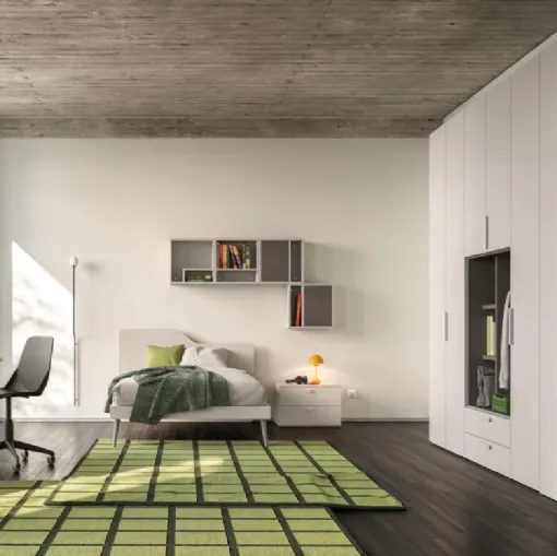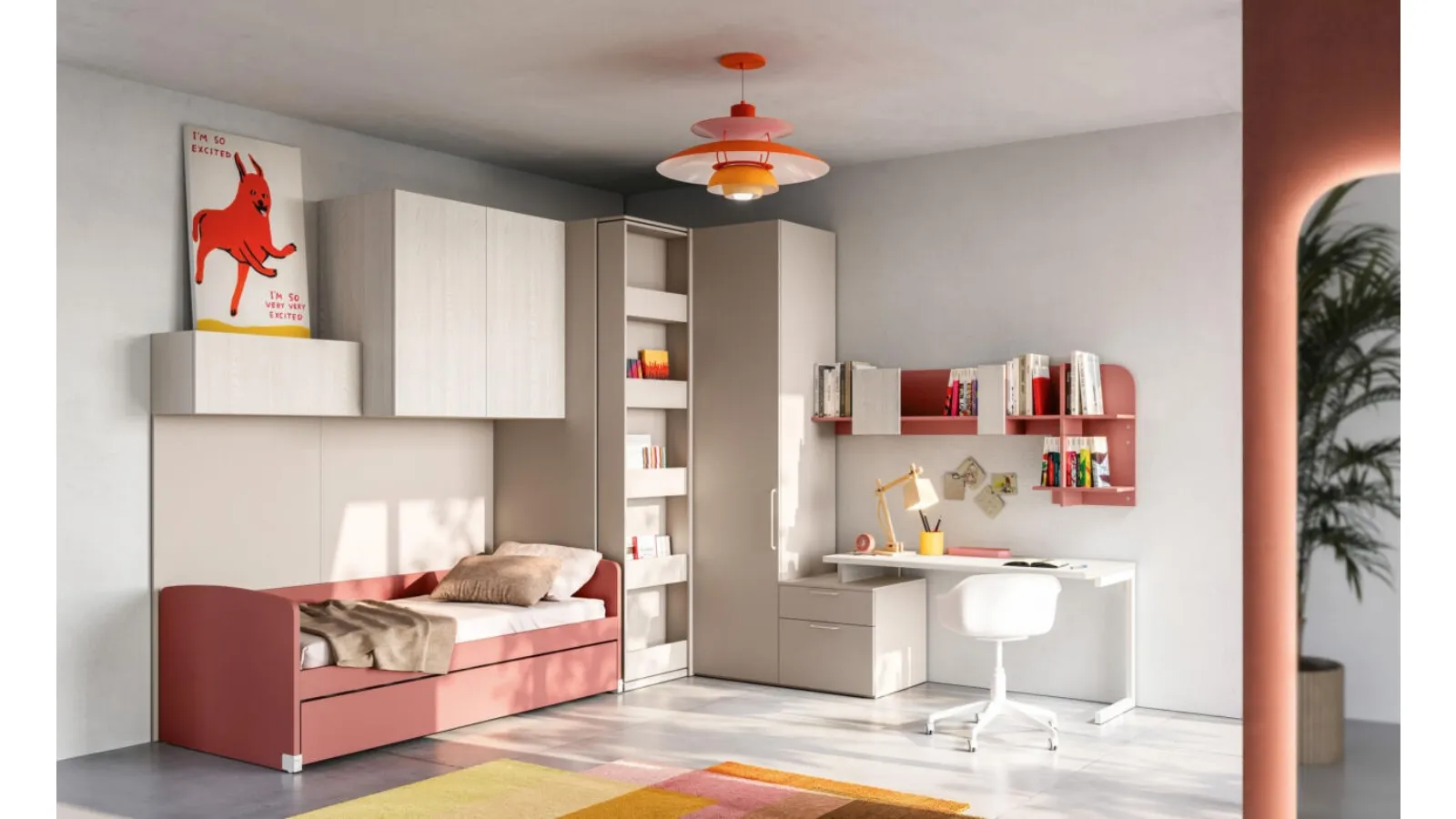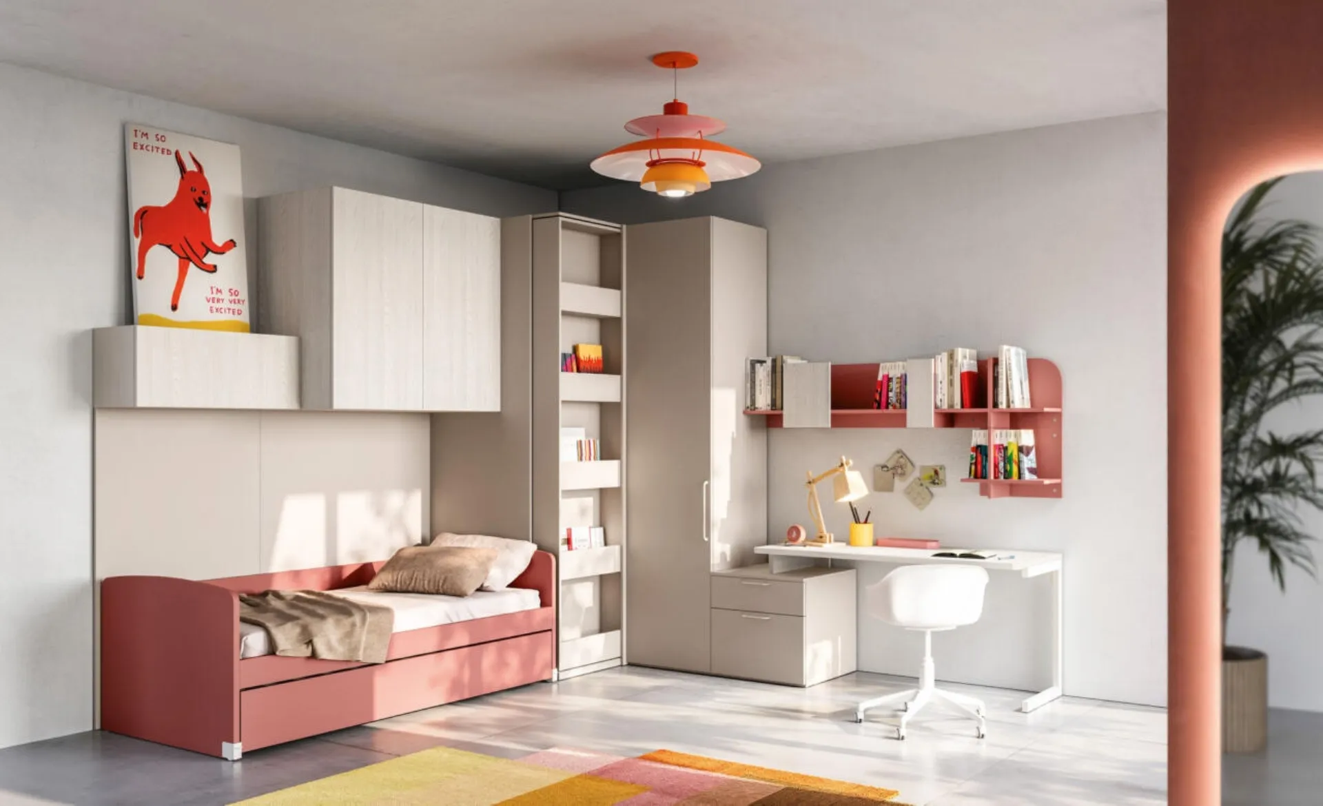 If you are looking for creative ideas to organize your children's room, we suggest the Mistral Composition Bed on the Ground 11 with a melamine finish. Mistral offers a rich catalog of accessories that can be custom-made: you will find a bed, wardrobe, desk, chairs, and bookshelves. Bring aesthetic value and vibrant colors to the room dedicated to the little ones with this proposal, one of Mistral's modular bedrooms for children. Trust us with the furnishing of the young ones' room: in our store, we offer all the most exclusive modern compositions for their bedroom. This melamine solution enhances the practical qualities and aesthetic value of the little room, as it is capable of combining ergonomics and safety.