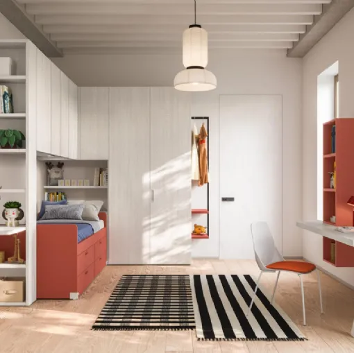 To organize the bedrooms optimally, Mistral proposes articulated and multifunctional projects: there are numerous activities that your children carry out there. The renowned brand presents various modern solutions, in this way the bedroom will be a place where children can grow and rest. Visiting us means seeing in person all the most beautiful melamine modular solutions for children that we offer in our showroom. With the Mistral Composition 25 Ground Bed Bedroom, you will make your children's room a truly functional and safe environment that will accompany them as they grow. This proposal with a melamine finish, among the modular solutions for children by Mistral, satisfies the expectations of adults and the tastes of children.