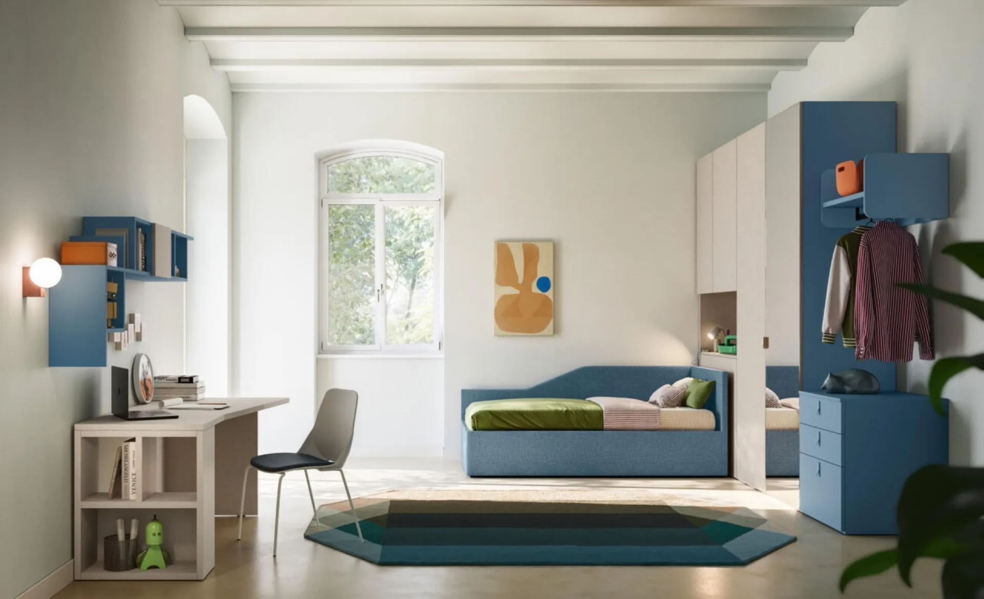 La Cameretta Letto a Terra 25, parte integrante della collezione 'Letti a terra' di Mistral, rappresenta una soluzione d'arredo avanzata, concepita per rispondere alle molteplici esigenze degli ambienti dedicati ai ragazzi. Il suo design si caratterizza per estetiche compatte che esaltano la funzionalità, creando un perfetto equilibrio tra ampi spazi contenitivi e zone operative dedicate. Le finiture disponibili per questo modello, come Cotone, Cobalto e S036, offrono versatilità stilistica. L'accurata selezione dei materiali e i processi produttivi ottimizzati garantiscono un equilibrio superiore tra performance e valore intrinseco del prodotto.