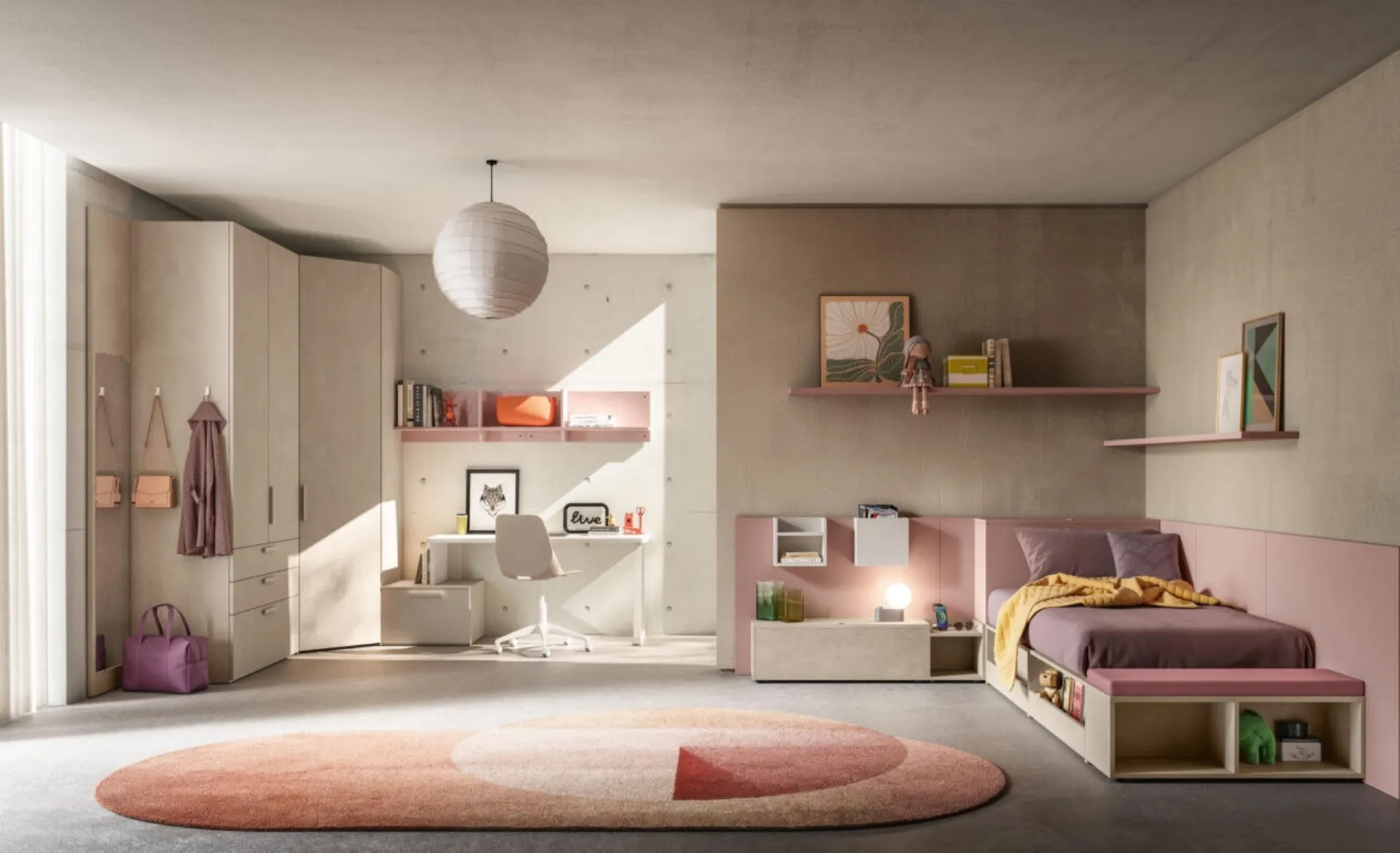 Our children's bedrooms are the place where they will grow up having fun and dreaming, so it is essential that the space is well organized. In our store, we guide you from choosing the furniture for the room to designing the place where your children will grow up, having fun and dreaming. Our children spend most of their day in their bedrooms: make them suitable for studying, having fun, and sleeping every day. In our store, we offer various modern modular bedrooms for boys from the brand, ideal for following them during their development. With the Mistral Composition Bed on the Ground 26 in melamine, you will ensure a perfect combination of ergonomics and safety, ideal for your children's room.