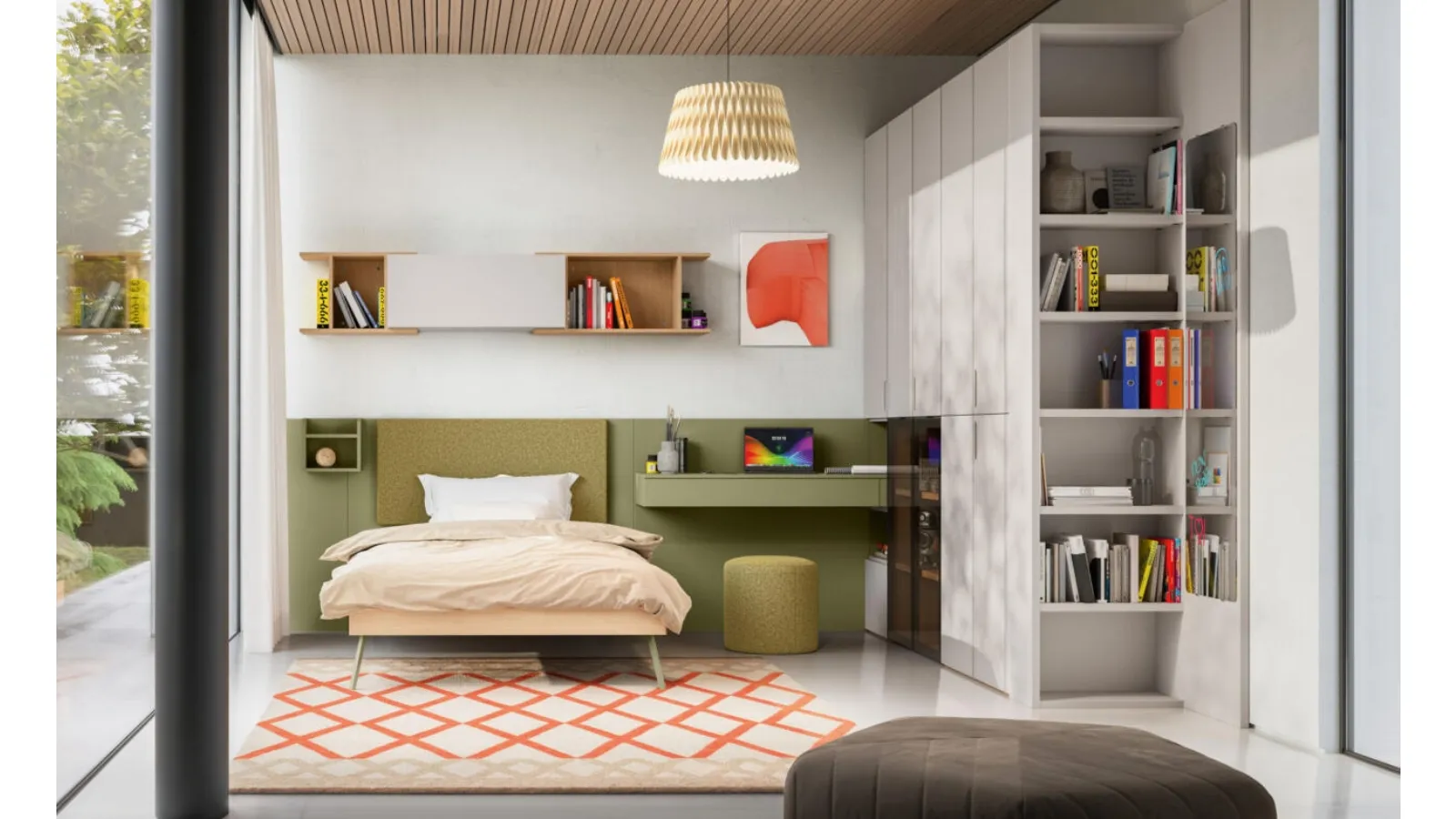 Discover in our showroom the Composition Bed on the Ground 27 by Mistral in melamine: it is perfect for recreating a welcoming, beautiful, and well-organized environment. The accessories available for the modular Mistral Kids' Rooms are always customizable to avoid any space and practicality issues. The modular Kids' Rooms by the renowned brand are available in multiple versions, always meeting the children's demands. Durable materials and non-toxic paints characterize the brand's proposals, among which you will also find modern modular options ideal for you. If the room has limited dimensions, Mistral offers different solutions, always able to combine ergonomics and safety.
