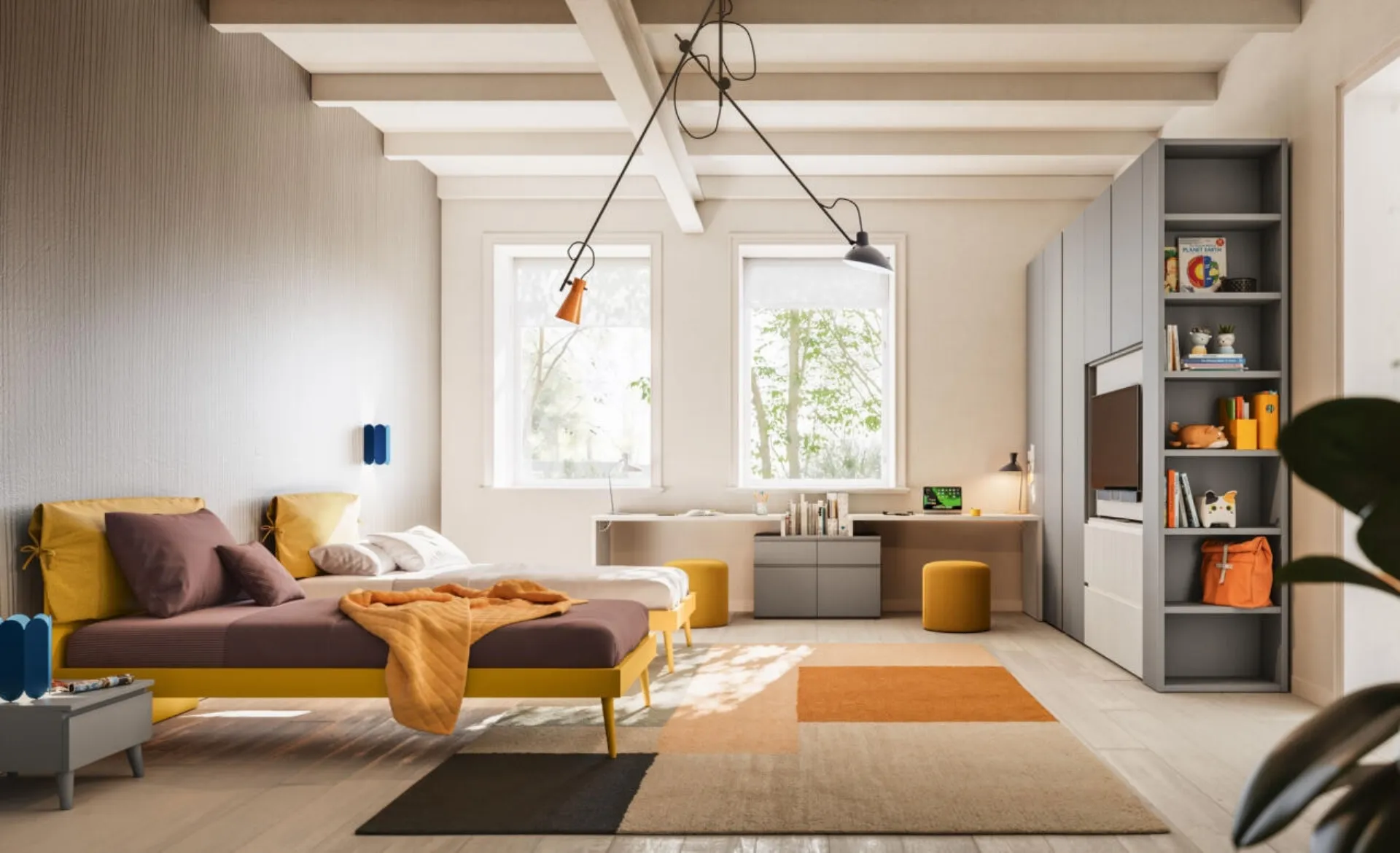 La Cameretta Letto a terra 30 di Mistral rappresenta una soluzione d'arredo progettata per ottimizzare gli spazi dedicati ai giovani. Questa configurazione, parte della collezione Letti a terra, integra elementi funzionali come i letti One, caratterizzati da una cuffia con fiocco, e un armadio Corner che include una colonna con vano TV orientabile e un terminale libreria. La composizione è completata da scrittoi T31 con cassettiere integrate, pensati per garantire efficienza e ordine. Realizzata in melaminico, la linea Mistral si distingue per la sua capacità di creare ambienti modulari e stimolanti, adattandosi dinamicamente alle diverse fasi di crescita e alle esigenze di gioco, studio e riposo dei ragazzi. Per un'analisi approfondita delle specifiche tecniche e delle opzioni di personalizzazione, si raccomanda la consultazione della documentazione ufficiale o un contatto diretto.