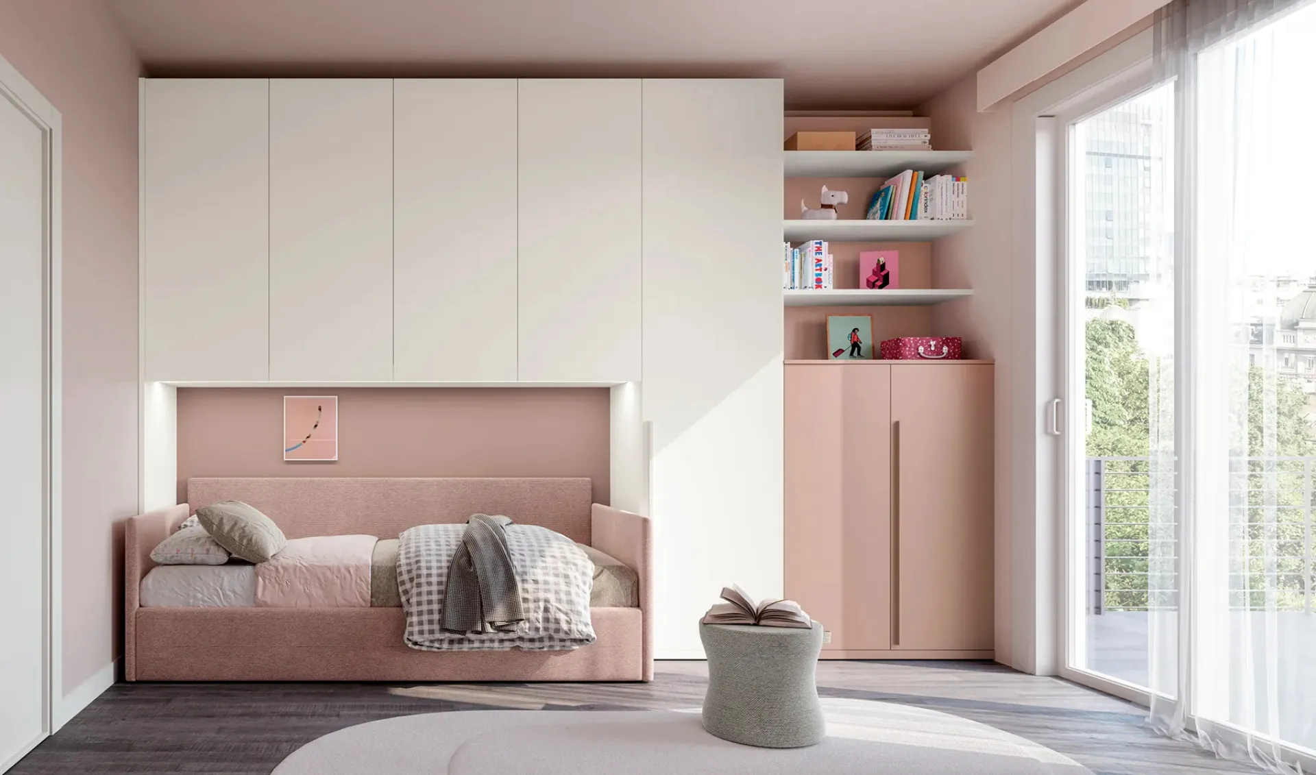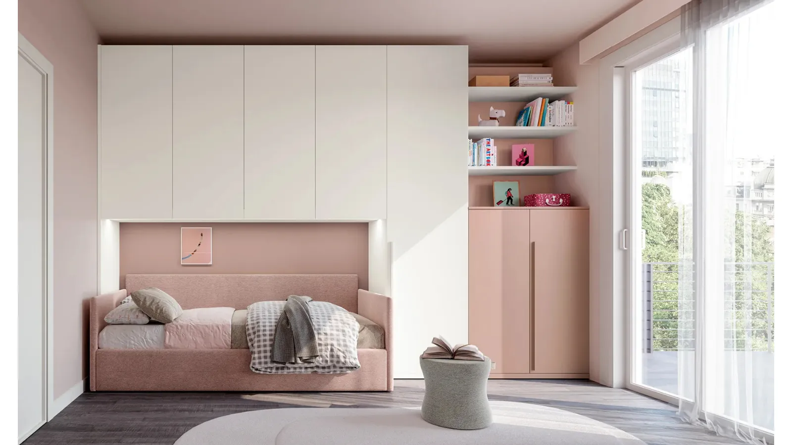 The well-known brand offers multiple modern solutions, so the bedroom will be a room where children can grow up and rest. This proposal with a matte lacquered finish, among those bridge solutions for girls by Doimo Cityline, meets the demands of adults and the tastes of young people. Visiting our store means seeing in person all the most exclusive solutions for girls with matte lacquered bridge beds that we offer in store. To perfectly design the bedrooms, Doimo Cityline offers project solutions and multifunctional options: there are various activities that your children can carry out there. With the Layout 01B Bedroom by Doimo Cityline, you will make your children's room a truly functional and safe space, which will accompany them as they grow up.