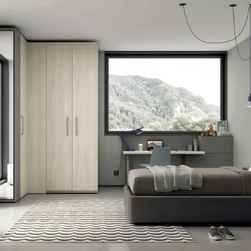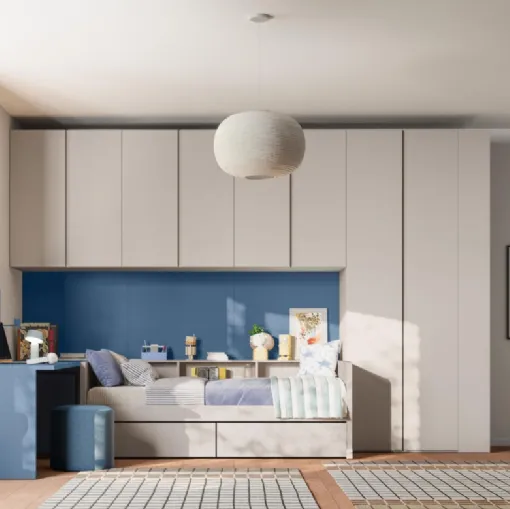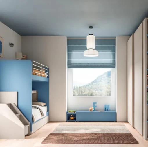 With the Layout 05A children's room by Doimo Cityline in melamine, you will ensure a perfect mix of ergonomics and safety, ideal for your children's room. We offer a variety of custom-made modern children's rooms at our store from the brand, perfect for accompanying them during their development. We guide you from the choice of furniture for the room to the design of the place where your children will grow up, play and dream. Our children spend hours of their days in their bedrooms: make them suitable for studying, having fun, and sleeping every day. Our children's rooms are the space where they will spend their first years playing and dreaming, so it is essential that the space is functional.
