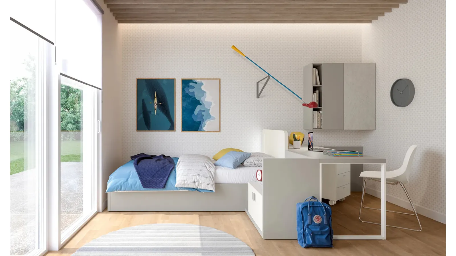 Discover in our store the Layout 07A children's room by Doimo Cityline in matte lacquer: perfect for creating a comfortable, beautiful, and well-organized environment. The additional accessories available for Doimo Cityline's customized children's rooms are always customizable to avoid any space and functionality issues. The renowned brand's customized children's rooms are available in multiple versions, always meeting the needs of children. If the room is not spacious, Doimo Cityline offers various solutions that combine ergonomics and safety. Precious materials and ecological paints characterize the brand's proposals, including modern customized options ideal for you.