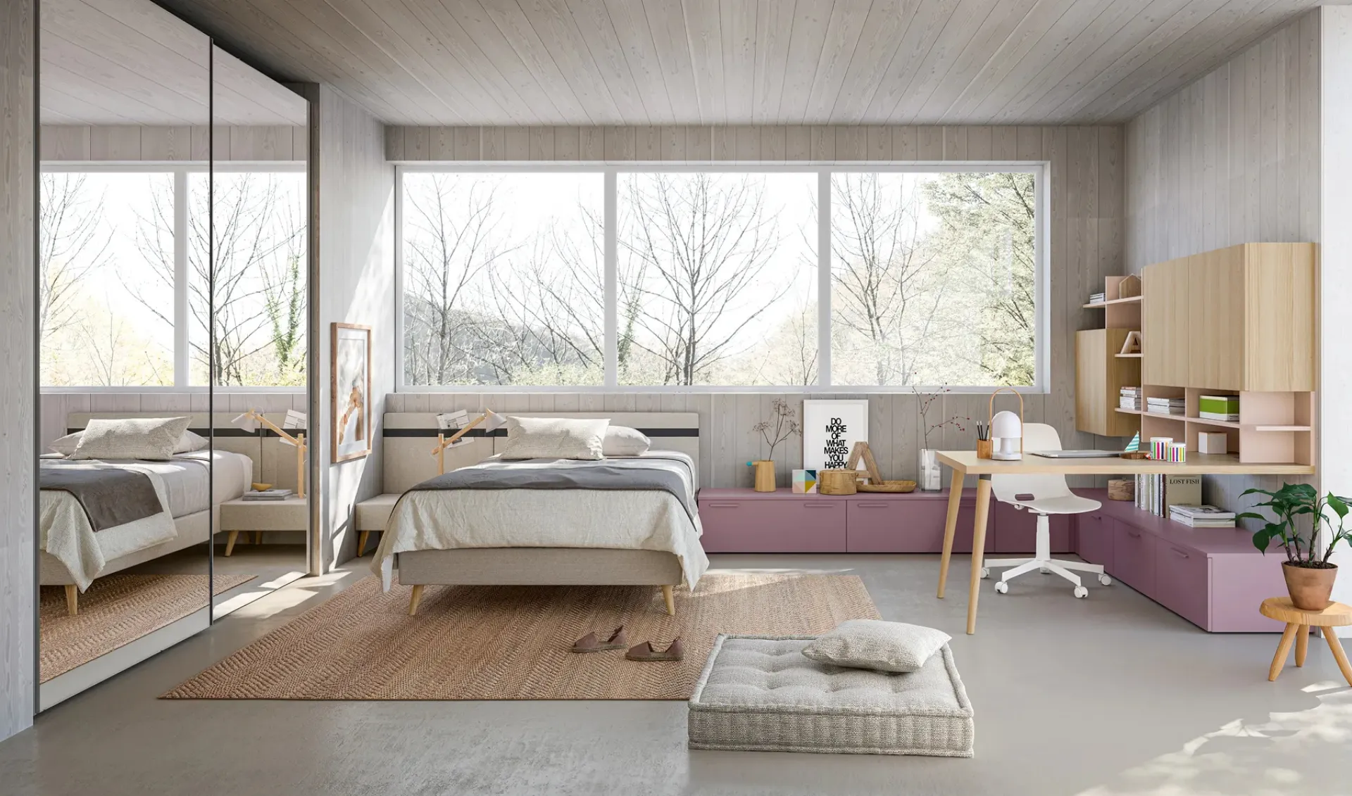 | Configurazione: | Letti a terra o a soppalco, armadi, zone studio integrate |