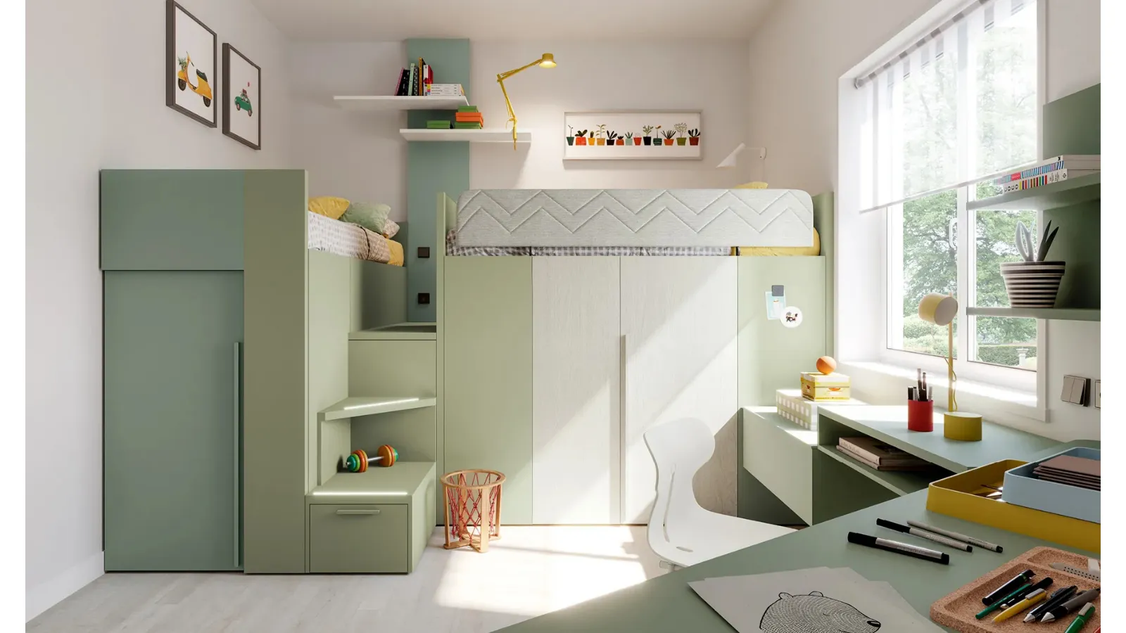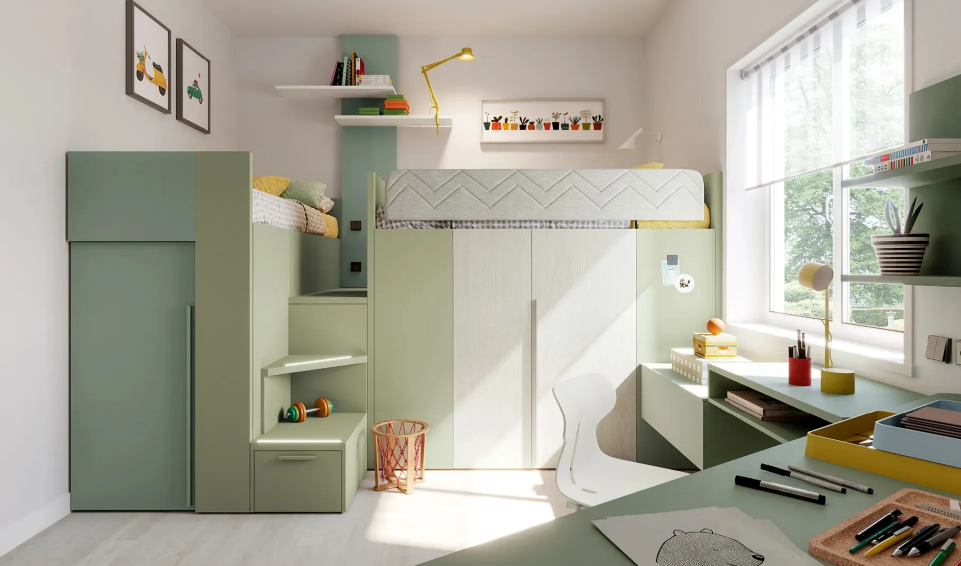 The accessories available for Doimo Cityline loft beds are always customizable, to avoid any problems with space and practicality. If the room has limited dimensions, there are several solutions that Doimo Cityline offers, always able to combine functionality and ergonomics. Discover in our showroom the Doimo Cityline melamine Loft Bedroom Layout 10B: it is ideal for creating a comfortable, beautiful, and well-organized environment. The loft beds for children of the renowned brand are available in various versions, always meeting the demands of children. Precious materials and non-toxic paints characterize the brand's offerings, including modern loft beds ideal for you.