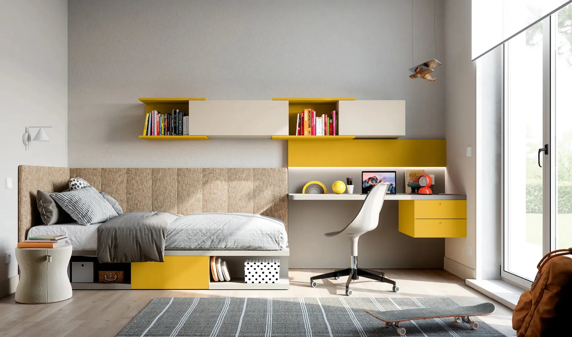 Visiting us means seeing firsthand all the most original solutions for children's rooms in matte lacquer that we offer in our store. The renowned brand offers multiple modern solutions, turning the children's room into a space where your kids can grow up and dream. To furnish children's rooms optimally, Doimo Cityline offers design solutions that are multifunctional: there are several activities that your children can do there. This proposal with a matte lacquer finish, among the modular solutions for children from Doimo Cityline, meets the needs of adults and the tastes of young people. With the Layout 13A children's room by Doimo Cityline, you will make your children's room a truly livable and safe environment that will accompany them as they grow up.