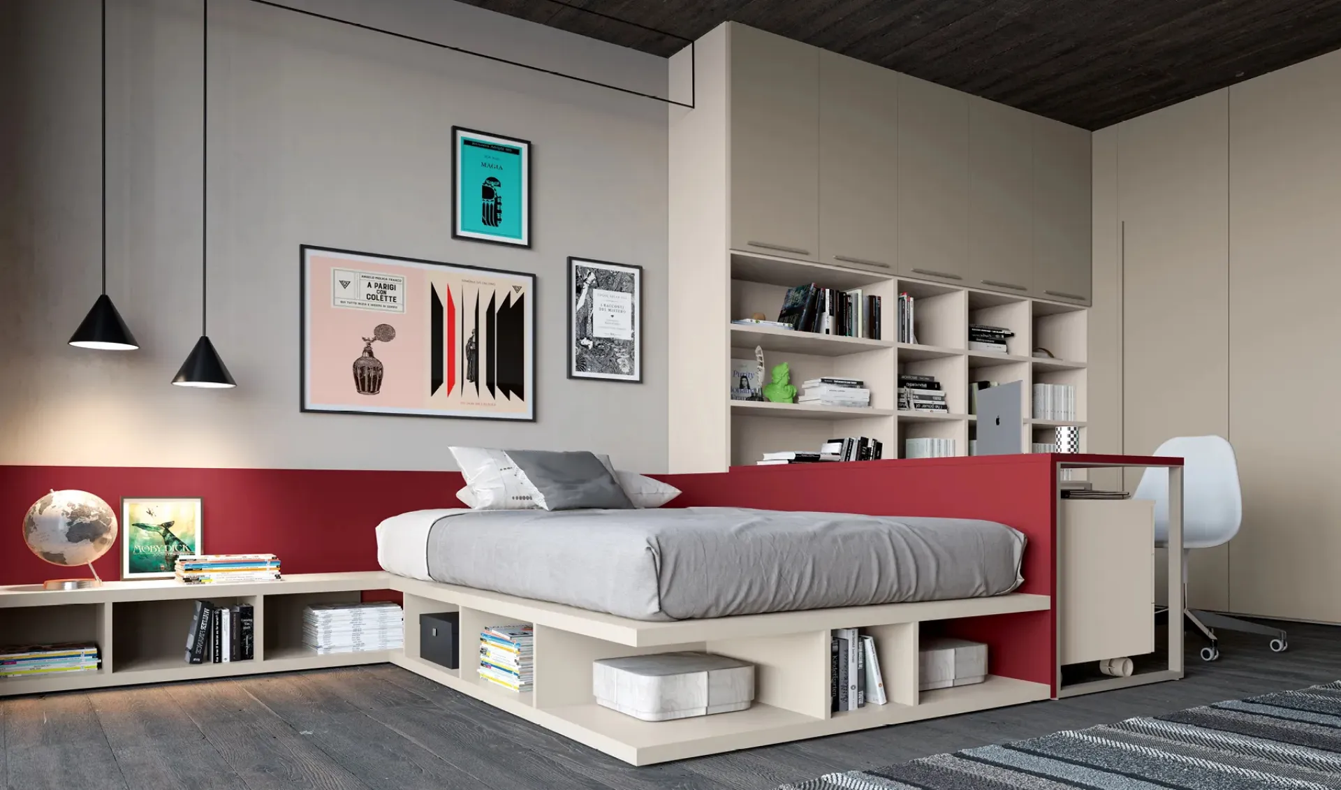 Visiting our store means seeing in person all the most beautiful solutions for modular kids' furniture in matte lacquer that we offer in our showroom. The renowned brand presents various design solutions, turning the children's room into a space where kids can grow up and rest. To perfectly furnish the kid's room, Doimo Cityline offers detailed and multifunctional projects: there are several activities that your children can do there. This solution with a matte lacquer finish, among the modular options for kids by Doimo Cityline, satisfies the needs of adults and the tastes of children. With the Layout 15A kids' room by Doimo Cityline, you will make your children's room a truly livable and secure place that will accompany them as they grow.