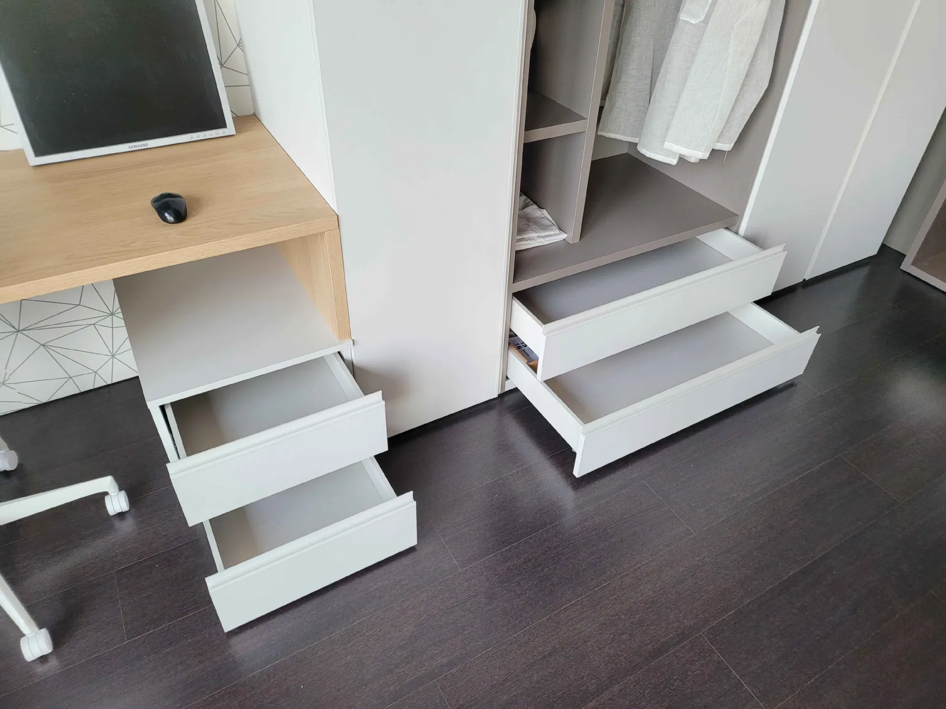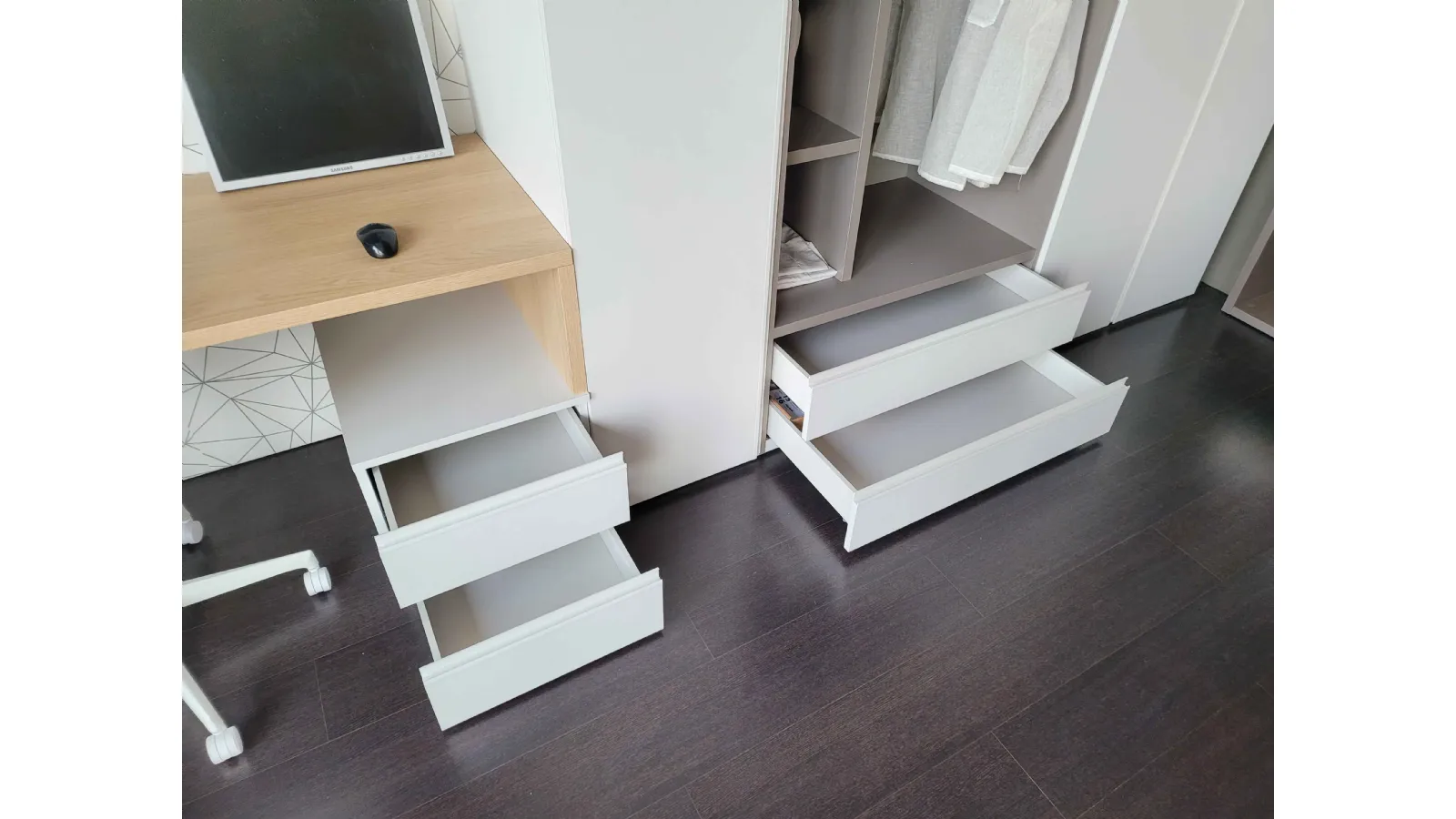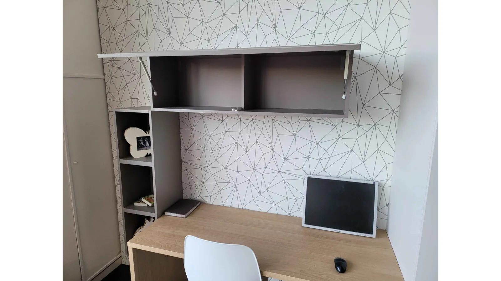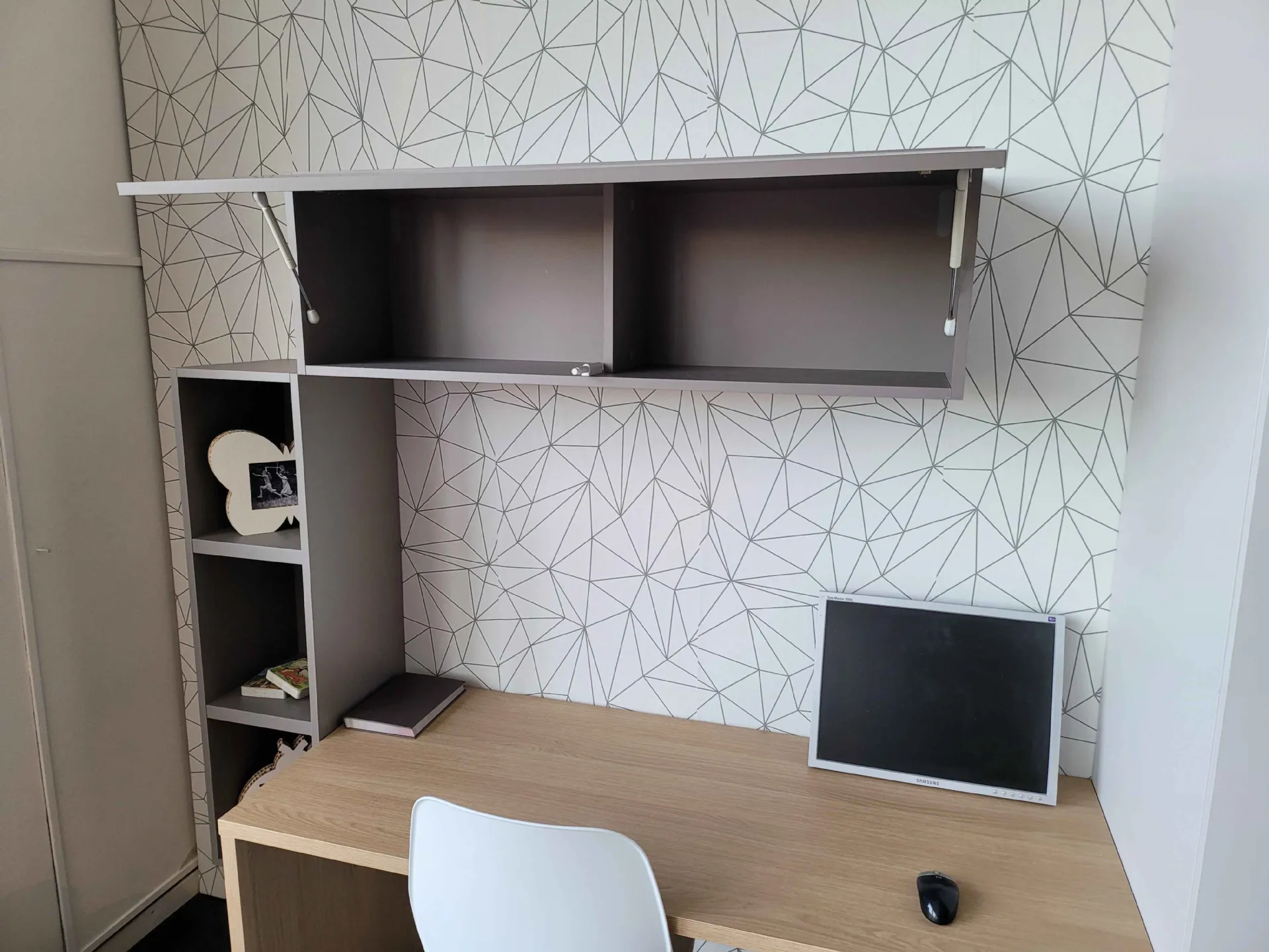 This little room è ideal for those who want to furnish their bedroom in a definitive way thanks to its colors and elegant and functional style. The bed from a half square è suitable for every need. E& # 39; in oak finish with oak and dark gray headboard, supported by high and comfortable feet for easy cleaning of the lower part of the bed. The size of the bed è of cm L.129xP.203,6. At the side of the bed è present a comfortable two-drawer bedside table with wheels, easy to move to the desired position. Behind the bed we have a comfortable double-sided bookcase (NOT INCLUDED IN THE PRICE), to store school books in an extremely tidy way. A valid solution to always have them at hand. L& # 39; capacious wardrobe with five doors present in the composition measures cm L.225xP.60xH.260. L& # 39; opening of the doors è very practical and comfortable thanks to the groove handle in the same color. In the central part of the wardrobe è there is an open module with shelves and a hanger tube, useful for storing everyday clothes and everyday objects such as folders and books. Internally è equipped with five clothes hanger tubes and two external drawers. On the side è present the study area where there is a large and practical desk measuring cm L.150 supported by solid and sturdy wooden legs. On the side è there is an open wall unit with shelves and a wall unit with flap door, practical and containing. Under the desk è present the chest of drawers with two drawers with opening by means of a groove handle in order to have everything at hand and with maximum order. È Also included is the chair with wheels shown in the photo. The composition measures cm L.465xP.330 and è You can make any changes in order to better adapt the various elements in the space available. The finishes present in the composition are Silk, Platinum, Bronze and Oak.