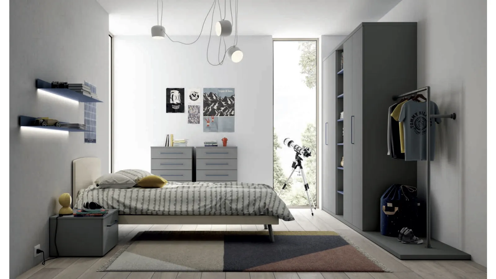 With Spagnol Mobili's Space 002 modular bedroom in matt lacquer you will ensure a perfect mix of functionality and ergonomics, ideal for your children's room. We present in our showroom multiple modern bespoke children's bedrooms of the brand, ideal for following them as they grow. In our store we take care of following you from the choice of bedroom furniture to the design of the place where your children will grow up, having fun and dreaming. Our children spend hours of the day in their bedrooms: make them suitable for homework, having fun and sleeping every day. Our children's bedrooms are the place where they will grow up having fun and dreaming, so it is essential that the space be practical.