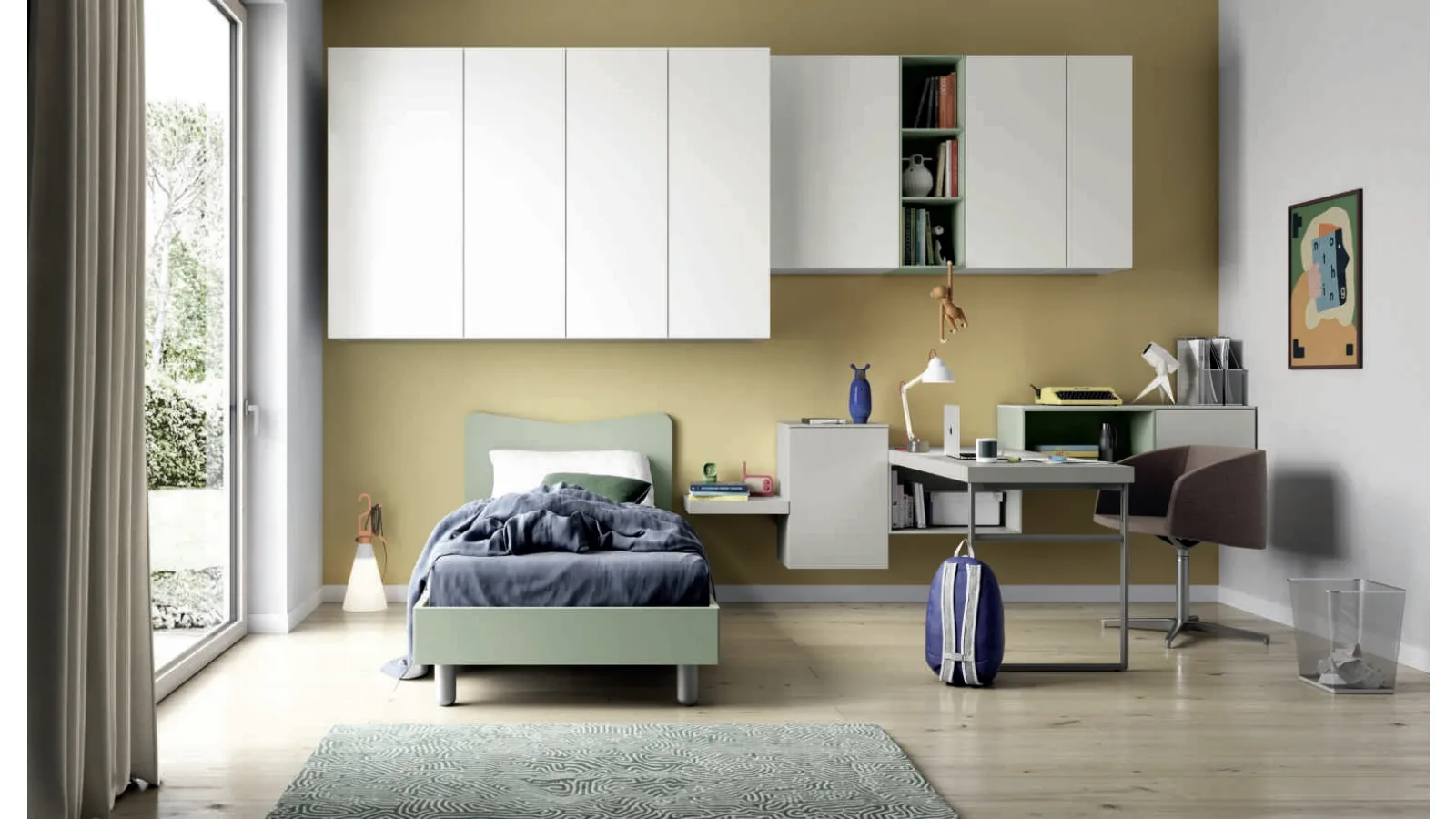 Model Space 012 with a matte lacquered finish designed for teenagers: discover all the space-saving solutions.