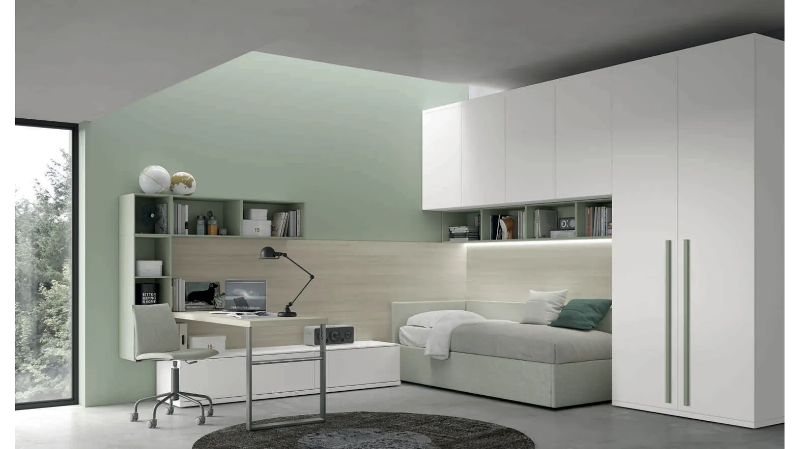 With Spagnol Mobili's Space 016 bridge bedroom set in matt lacquer you will guarantee a perfect mix of functionality and ergonomics, ideal for your children's room. We present in the shop various modern bespoke children's bedrooms of the brand, ideal for following them as they grow. In the shop we take care of following you from the choice of bedroom furniture to the design of the place where your children will grow up, playing and dreaming. Our children's bedrooms are the place where they will grow up having fun and dreaming, so it is essential that the space be practical. Our children spend hours of the day in their bedrooms: make them suitable for studying, playing and sleeping every day.