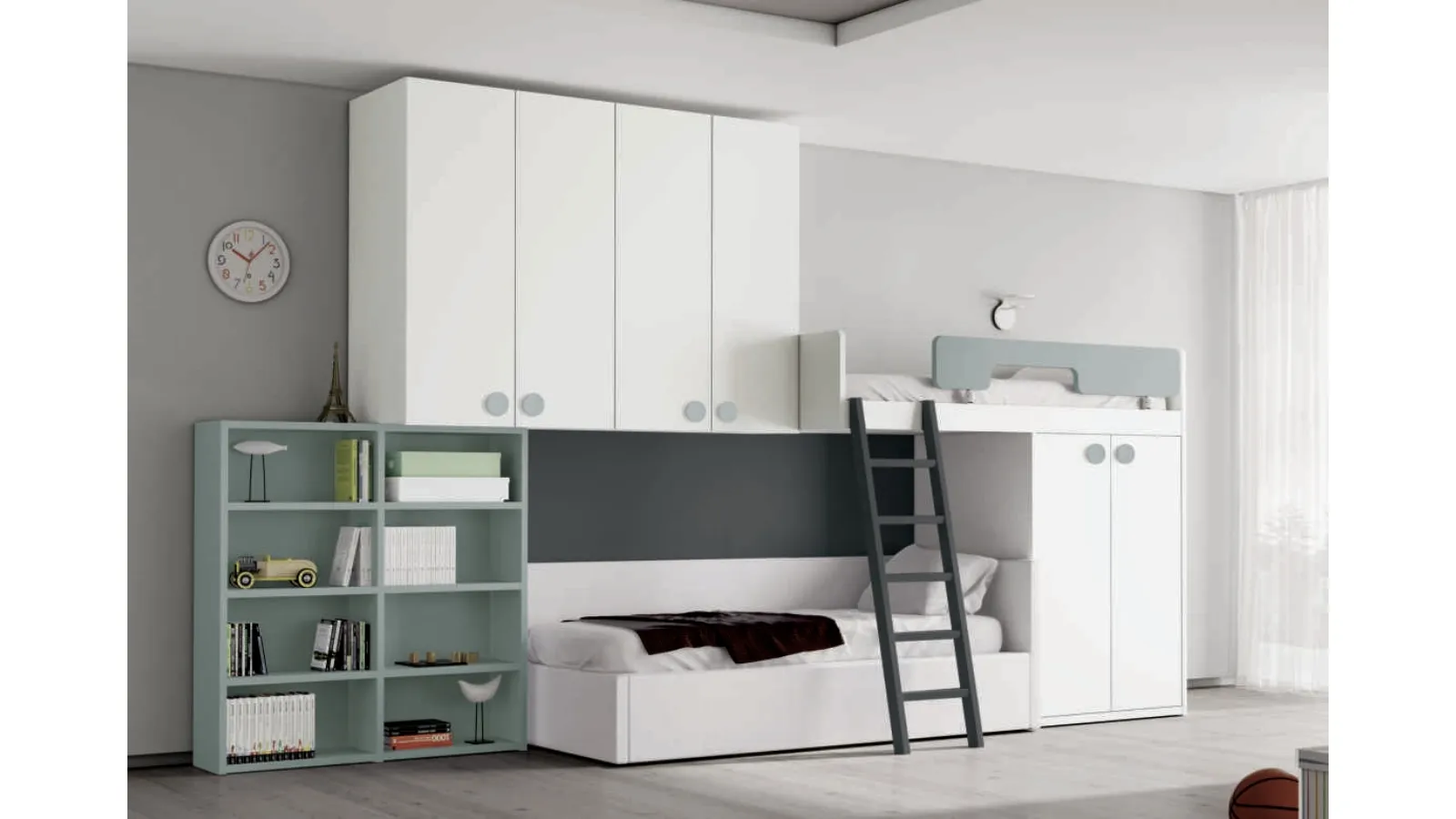 Discover in the shop the Space 023 bedroom with bunk beds by Spagnol Mobili in matt lacquer: it is ideal for perfectly creating an ideal environment for children, beautiful and well organized. The accessory elements available for Spagnol Mobili's bedrooms with bunk beds are always adaptable, to avoid any problems of space and functionality. The bedrooms with bunk beds for girls of the well-known and well-known brand are available in various versions, which always meet the needs of children. If the room has contained dimensions, the solutions that Spagnol Mobili offers are varied, always able to combine functionality and ergonomics. Precious materials and ecological paints characterize the brand's proposals, among which you will also find the modern ones with bunk beds that are ideal for you.