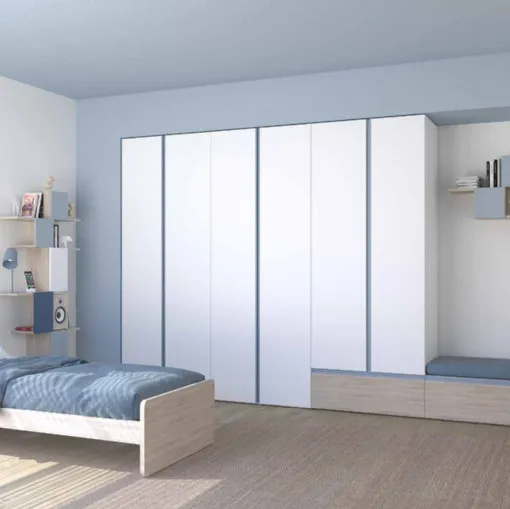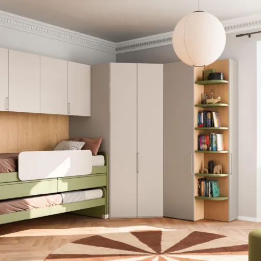 With the Space 027 bedroom with bunk beds by Spagnol Mobili in melamine you will ensure a perfect mix of functionality and ergonomics, ideal for your children's room. We present in our showroom various bedrooms with modern bunk beds for children of the brand, ideal for following them as they grow. In our store we follow you from the choice of bedroom furniture to the design of the place where your children will grow up, playing and dreaming. Our children's bedrooms are the place where they will grow up having fun and dreaming, so it is essential that the space be practical. Our children spend several hours of their days in their bedrooms: make them suitable for homework, playing and sleeping every day.