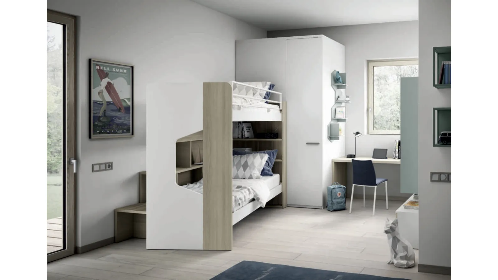 Model Space 029, made in matte lacquer, designed for children: discover all the solutions with bunk beds.