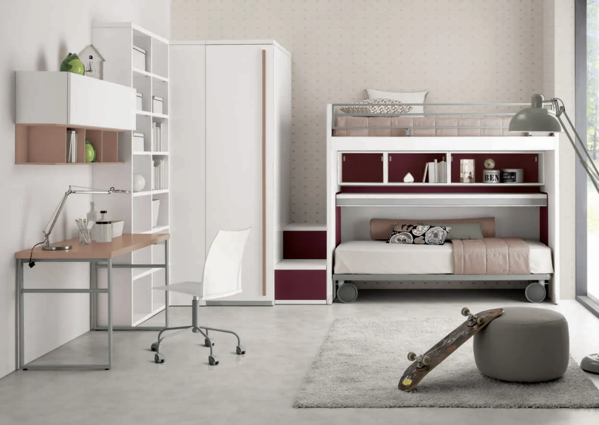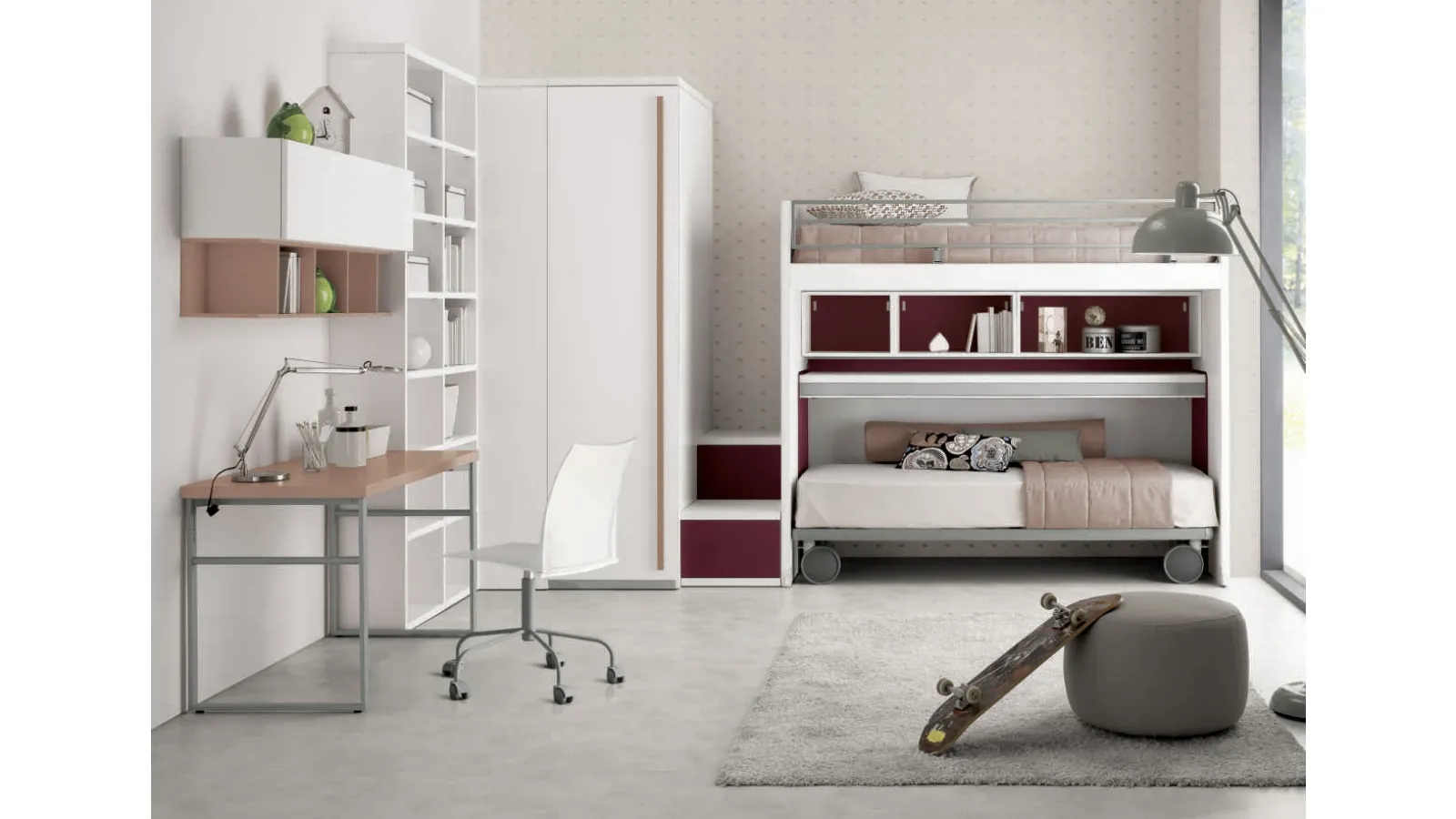 The well-known brand presents multiple modern solutions, in this way the bedroom will be a room where the children can grow up and rest. This solution with a matt lacquered finish, among those with bunk beds for children by Spagnol Mobili, satisfies the needs of adults and the tastes of children. Coming to the store means touching all the most original solutions for children with matt lacquered bunk beds that we present in the store. With the Space 030 bedroom with bunk beds by Spagnol Mobili you will make your children's room a truly comfortable and safe place that will follow them as they grow up. To optimally furnish the bedrooms, Spagnol Mobili makes design and versatile solutions available: there are numerous activities that your children carry out there.